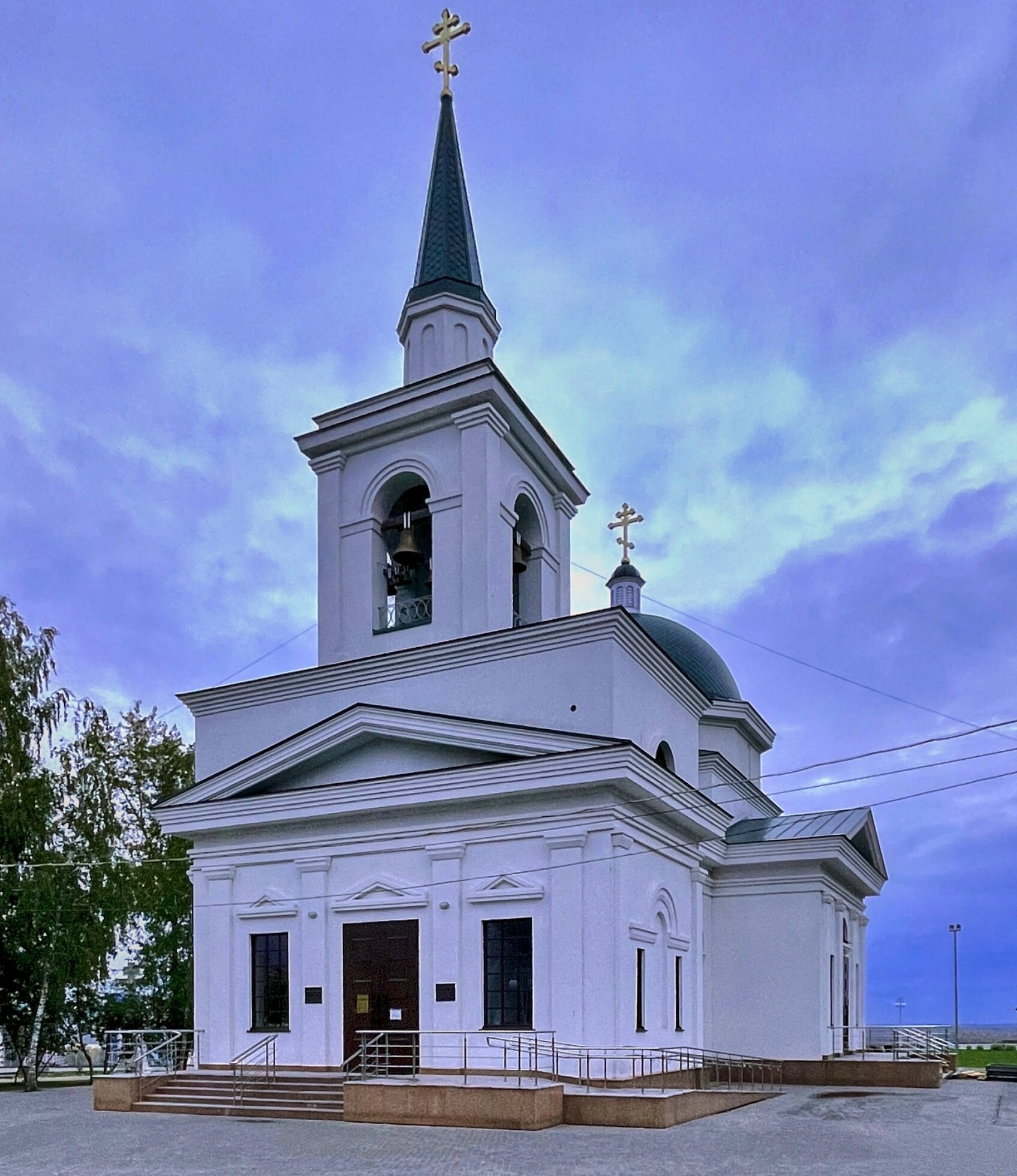 На фотографии запечатлён храм в честь святого Пророка, Предтечи и Крестителя Господня Иоанна, расположенный в живописном Нагорном парке города Барнаула. Святыня возвышается на правом берегу великой реки Оби, открывая благодатный вид на водную гладь и прилегающие окрестности.