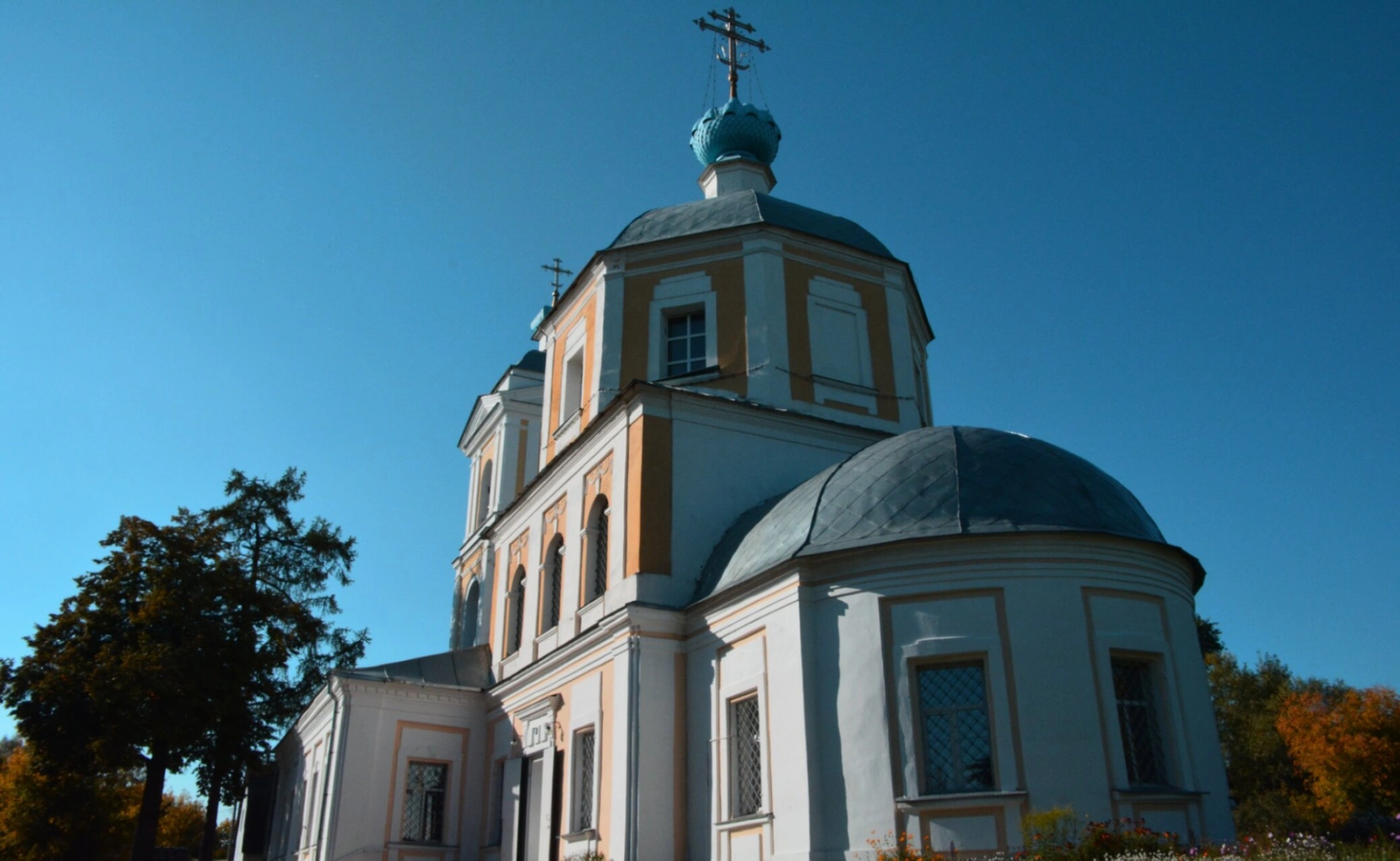 Снимок, сделанный в ясный день, передаёт не только архитектурные детали, но и особую, намоленную атмосферу этого святого места. Голубое небо, зелёные кроны деревьев, обрамляющих храм, и игра света на белых стенах создают возвышенный и торжественный образ, напоминая о вечной красоте и непреходящей ценности православной веры.