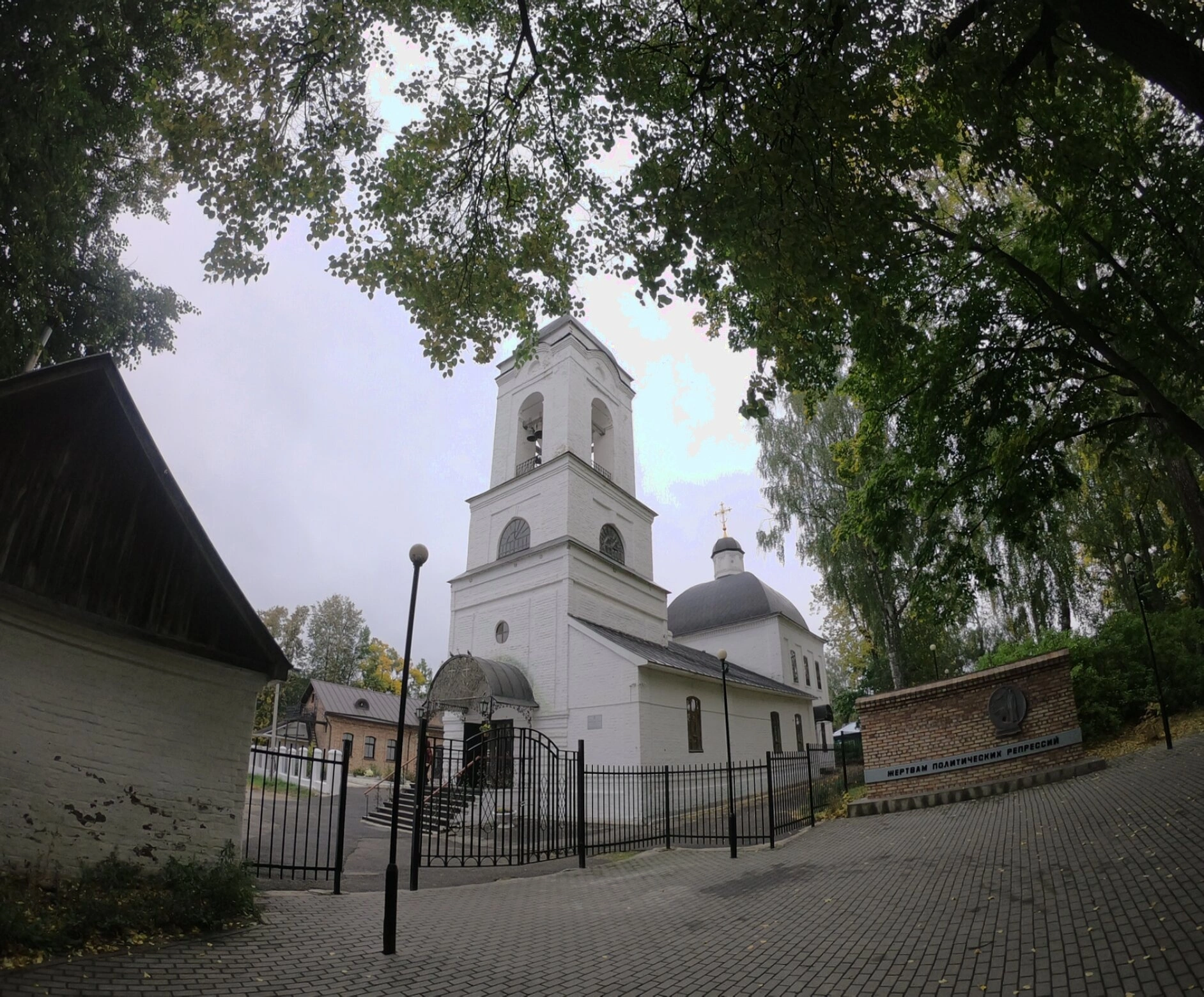 Храм органично вписан в окружающий ландшафт. Его обрамляют кроны высоких деревьев, чья зелёная листва подчёркивает благолепие церковных стен. К главному входу ведёт аккуратно вымощенная дорожка, огороженная ажурным металлическим забором. С правой стороны от здания можно видеть невысокий кирпичный забор с установленным на нём памятным знаком, что свидетельствует о почитании этого святого места.