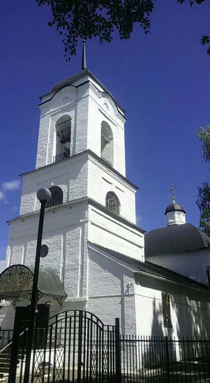 На представленной фотографии запечатлён старинный православный храм в честь святого мученика Иоанна Воина, расположенный в городе Коврове Владимирской области. Это каменная церковь, являющаяся ярким образцом русского церковного зодчества конца XVIII века, с присущей ему монументальностью и благолепием.