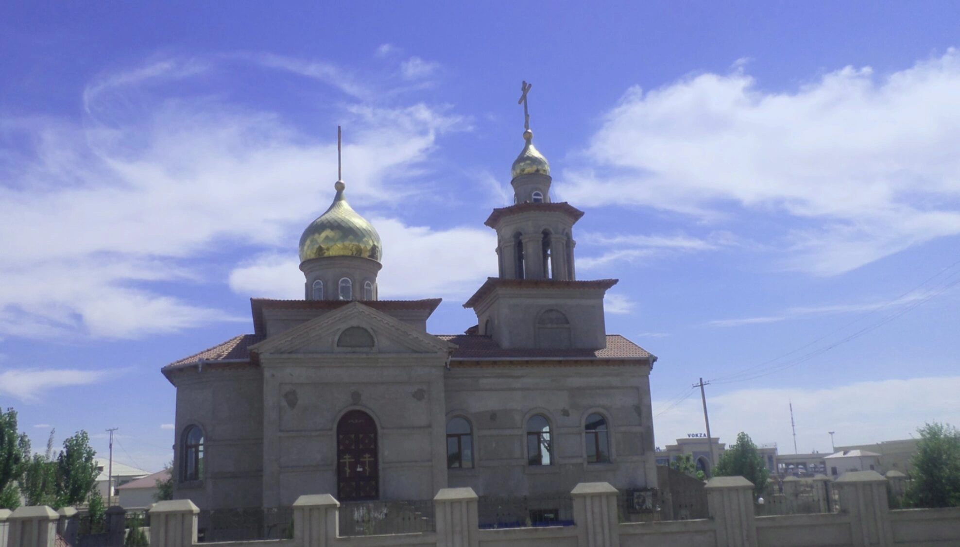 На представленной фотографии запечатлён православный храм в честь святого праведного Иова Многострадального, расположенный в городе Ургенче (Узбекистан). Этот святой образец церковной архитектуры является духовным центром для православных верующих Хорезмской области и важной частью культурного наследия региона.