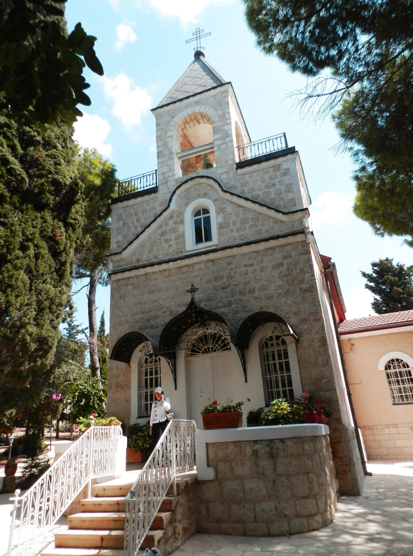 Дом Божий окружён благодатной средиземноморской зеленью, где особое место занимают кипарисы — древние символы вечной жизни и праведности, часто упоминаемые в Священном Писании. Церковь была основана в начале XX века Русской Духовной Миссией и освящена в честь ветхозаветного пророка Илии, который, по преданию, совершал свои молитвенные подвиги именно на горе Кармель.