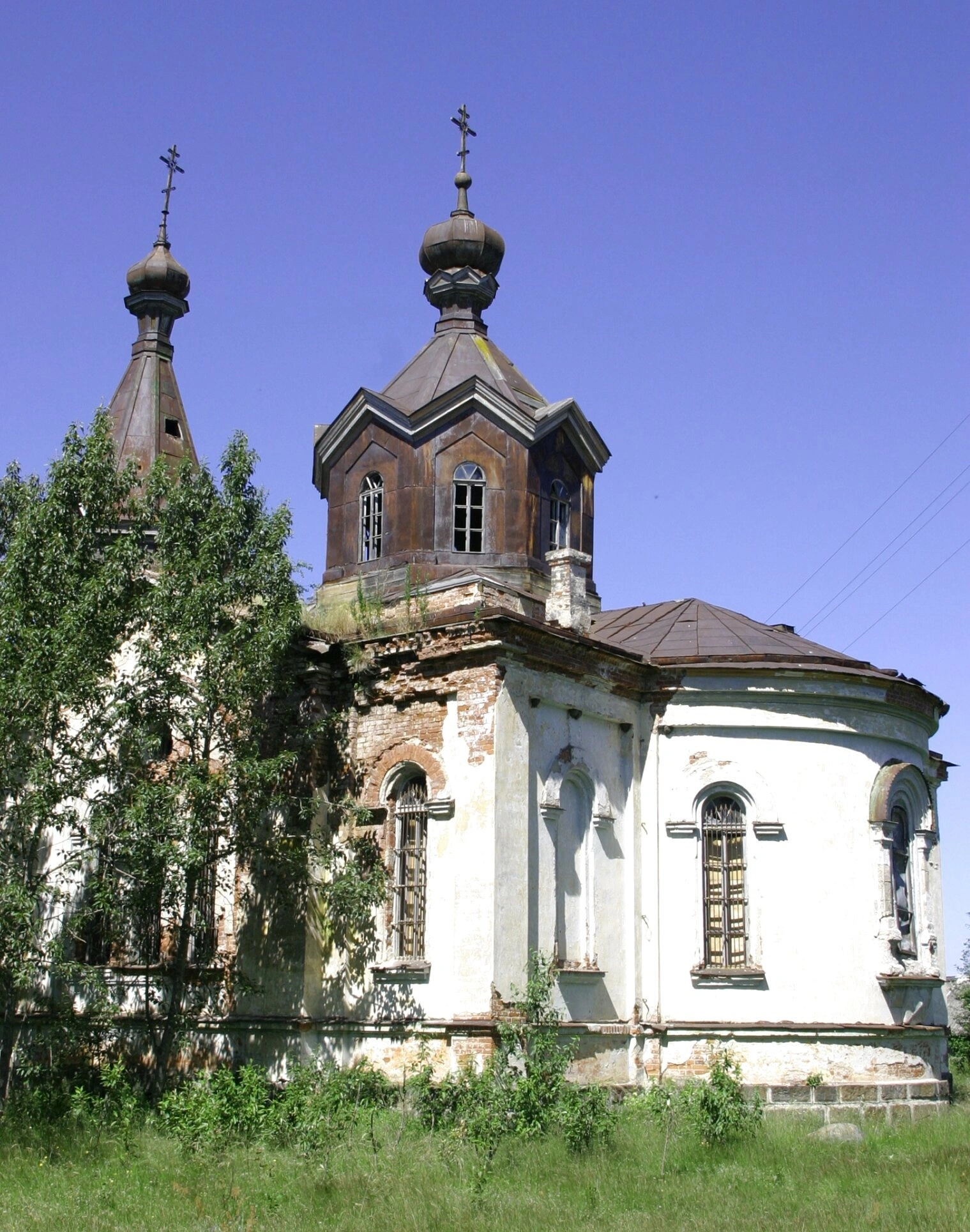 Каменная церковь была возведена в 1903 году на средства местного благотворителя, купца Ивана Ананьевича Воронина, по проекту губернского архитектора. Храм был построен в эклектичном русском стиле, с характерной шатровой колокольней и лаконичным убранством фасадов, что было традиционно для сельского церковного зодчества того периода.