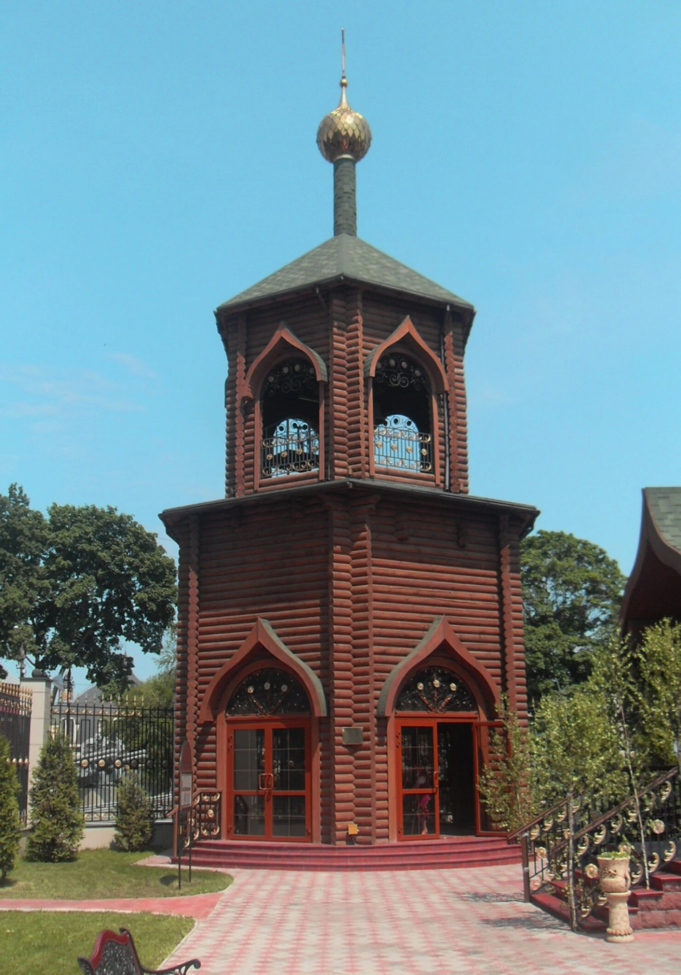 Свято-Владимирский храм был построен и освящён в 2008 году. Главной святыней церкви является икона с частицей мощей святого князя Владимира, крестителя Руси. Храмовая колокольня, изображённая на снимке, выполнена из дерева и увенчана изящным луковичным куполом, который символизирует пламя свечи, устремлённое к Небесам.