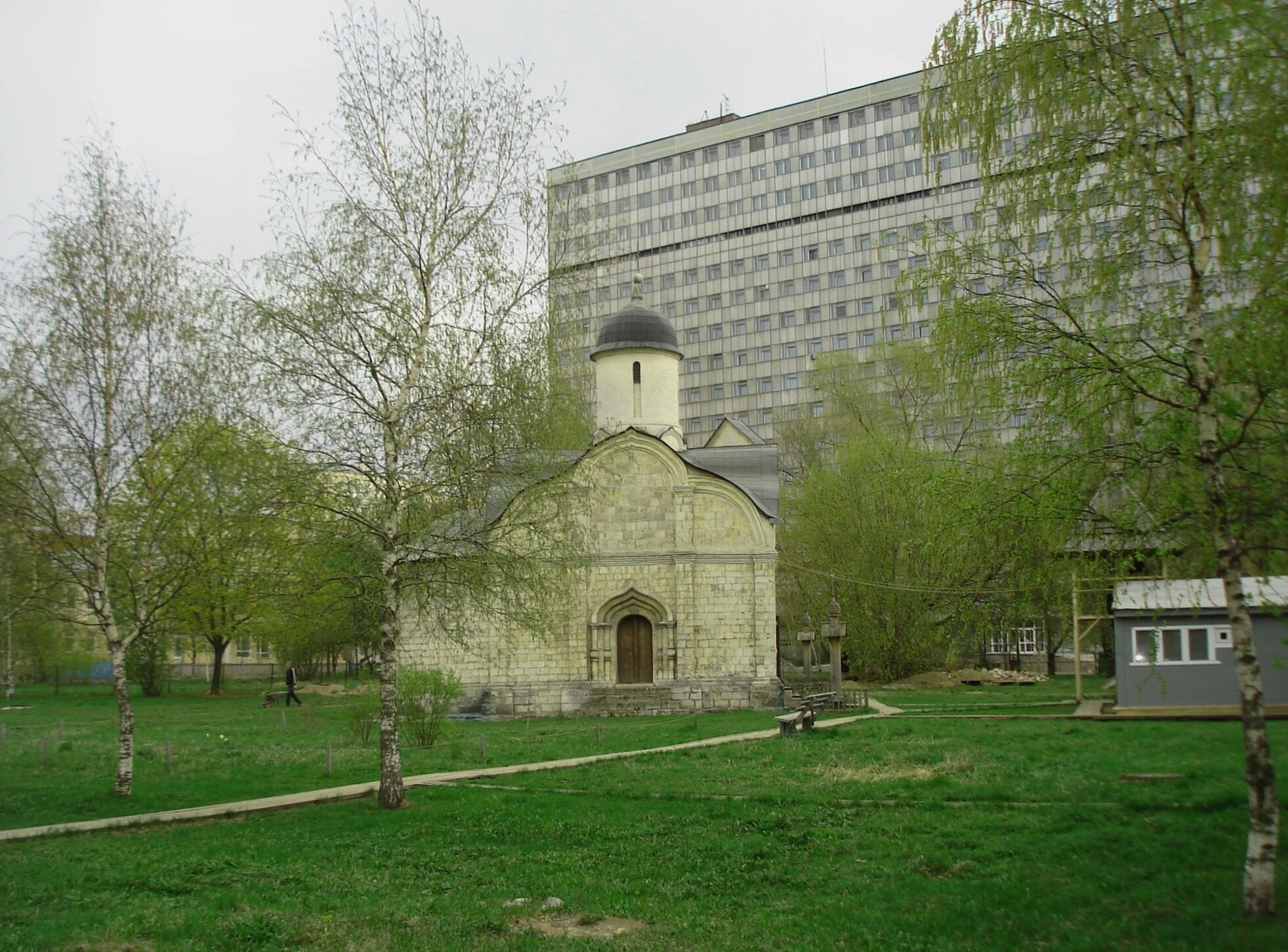 На представленной фотографии запечатлён древний православный храм — церковь святого мученика Трифона в Напрудном. Это один из старейших белокаменных храмов Москвы, чудом сохранившийся до наших дней. Святыня располагается в Мещанском районе, по адресу: Трифоновская улица, дом 38.