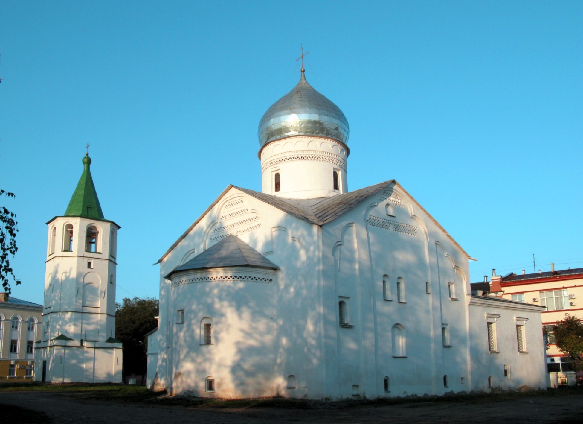 На представленной фотографии запечатлён один из древнейших православных храмов Великого Новгорода — церковь во имя святого великомученика Димитрия Солунского, расположенная на исторической Славковой улице. Этот намоленный храм, возведённый в 1381 году на месте более древней постройки XII столетия, является выдающимся памятником новгородского зодчества и объектом культурного наследия.