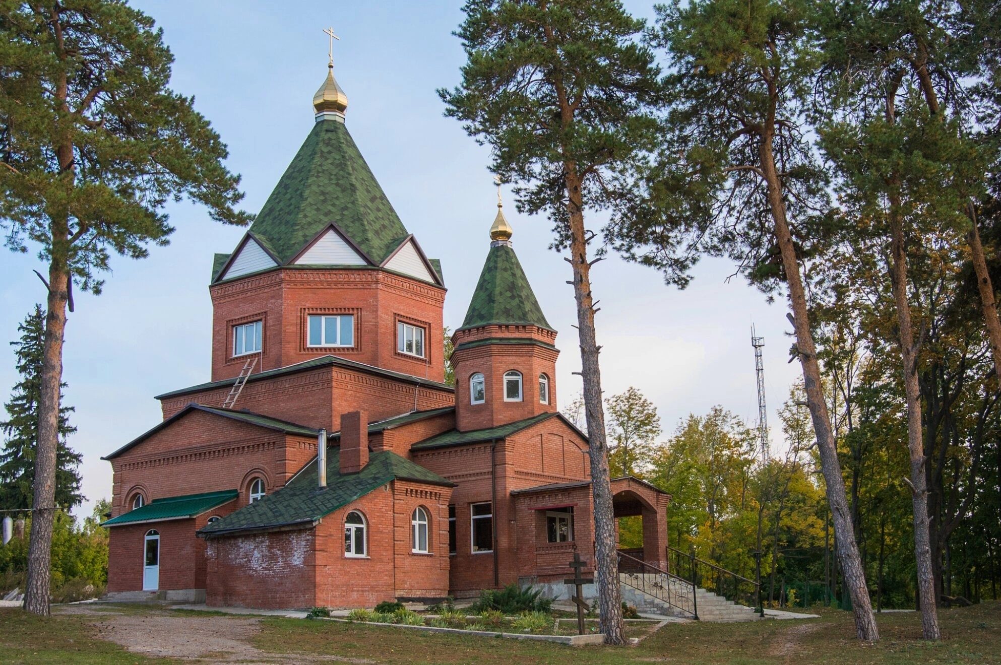 На фотографии запечатлён храм в честь святого великомученика Димитрия Солунского, расположенный в живописном посёлке Сосновый Солонец Ставропольского района Самарской области. Святыня возвышается среди векового соснового бора, что придаёт ей особую благодатную атмосферу уединённости и молитвенного покоя.