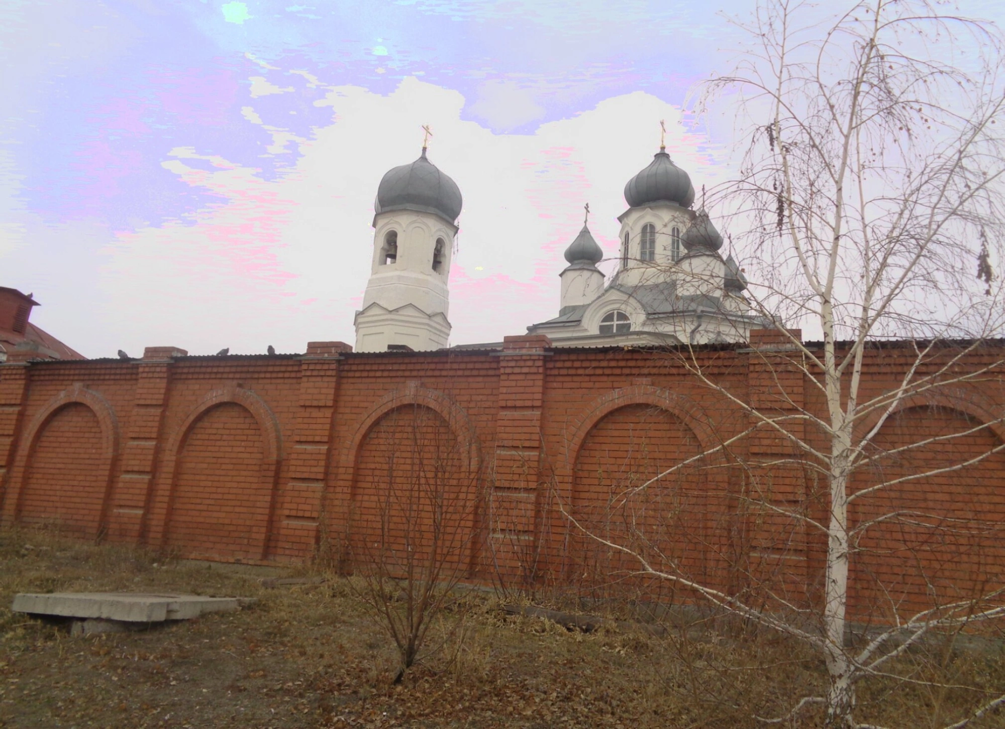 На фотографии запечатлён храм в честь святого великомученика Димитрия Солунского, расположенный в городе Троицке Челябинской области. Святыня возвышается на городском кладбище, являясь значимым памятником православной культуры и истории Уральского региона. Каменный храм был построен в 1873 году на средства Свято-Троицкого собора и первоначально освящён как кладбищенская церковь. Архитектурный облик храма отличается благородной сдержанностью, соответствующей его назначению. Изначально сооружение дополняла деревянная колокольня, которая в 1889 году была заменена на каменную. В начале XX века усердием благочестивых жертвователей к основному объёму были пристроены два придела: южный во имя первомученика и архидиакона Стефана и северный в честь святой равноапостольной княгини Ольги. Предполагается, что эти приделы были освящены в память о внуке первостроителя храма и его супруге. Храм завершается устремлённым вверх куполом на световом барабане, который окружён четырьмя малыми главками, а над западной папертью возносится изящная восьмигранная колокольня со сферическим куполом. В советский период, в 1930 году, храм был закрыт, а его богатое убранство и церковная утварь переданы государству. Помещение использовалось под складские нужды. По милости Божией, в 1947 году церковь была возвращена верующим и с тех пор более не закрывалась, долгое время оставаясь единственным действующим храмом в округе. Ныне при храме святого великомученика Димитрия Солунского действует воскресная школа для детей и взрослых, где все желающие могут изучать основы православной веры, церковной культуры и пения. Богослужения совершаются ежедневно: вечернее служение начинается в 17:00, а Божественная литургия — в 8:30. Храм является центром духовной жизни города и объектом культурного наследия, привлекающим как паломников, так и ценителей православной архитектуры.