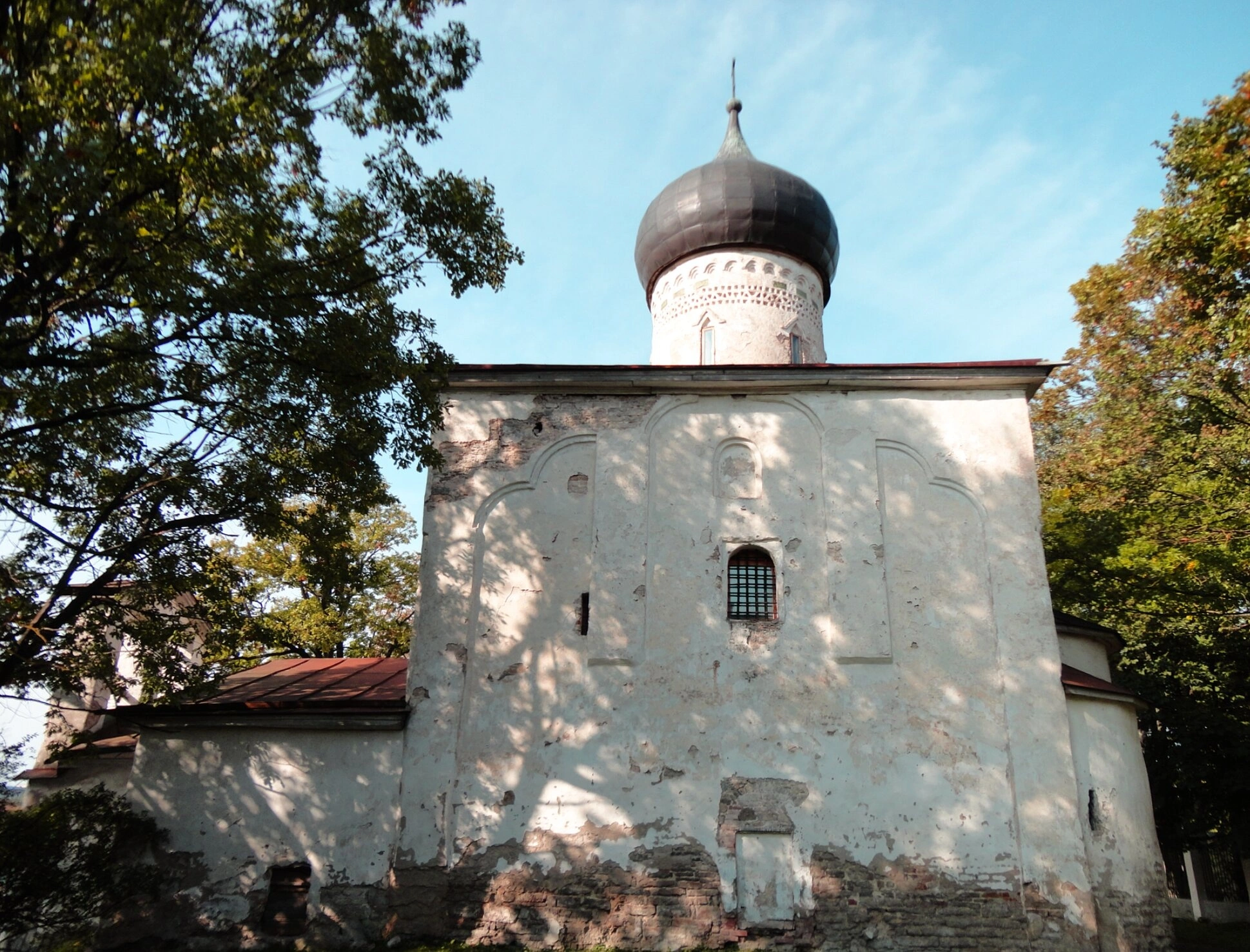 Церковь святого Георгия со Взвоза — это не только место молитвы, но и живая свидетельница многовековой истории Псковской земли, её духовной стойкости и архитектурного гения. Фотография передаёт благородную строгость древних стен, хранящих память о поколениях православных христиан, молившихся в этом святом месте.