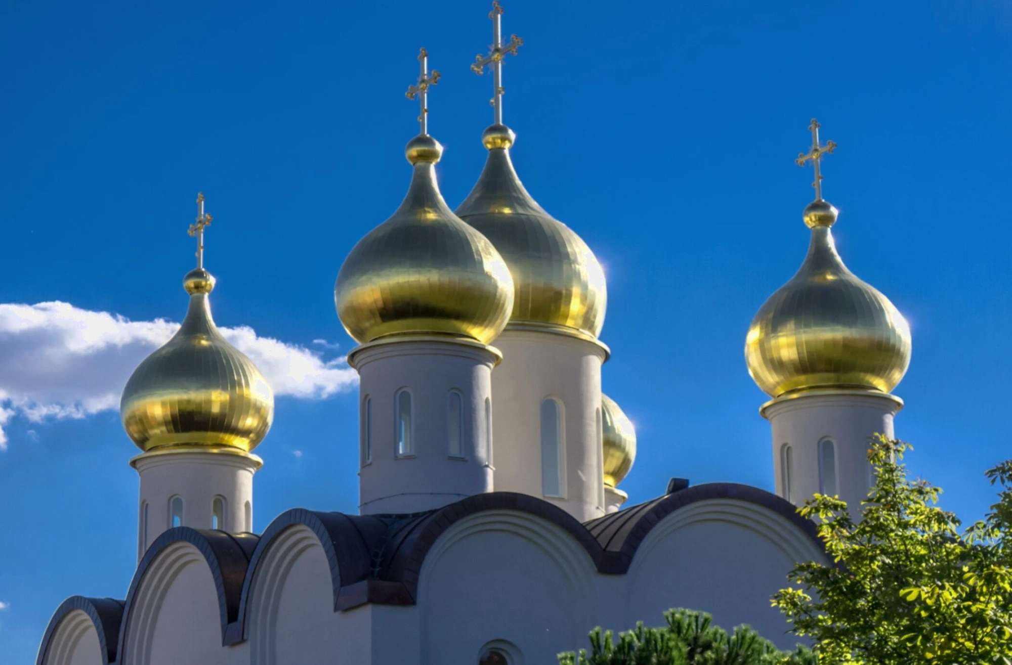 На фотографии запечатлён величественный вид на золотые купола собора в честь святой равноапостольной Марии Магдалины, находящегося в столице Испании. Этот православный храм, расположенный по координатам 40.46700100, -3.65127500, является не только духовным центром для русскоязычной паствы, но и значимым архитектурным памятником, привлекающим внимание как верующих, так и туристов.