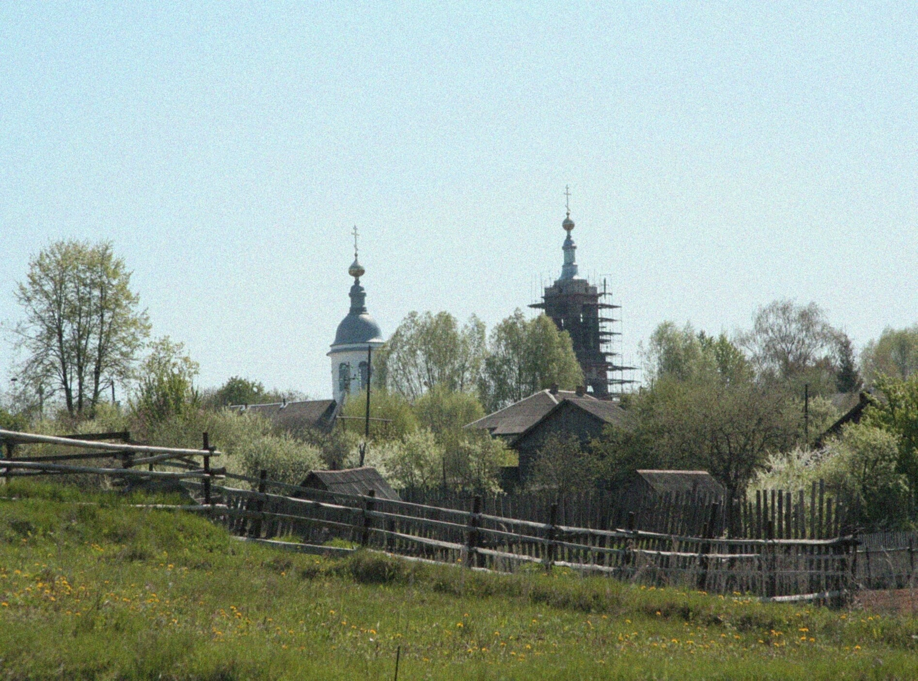 - Храм Святой Троицы в селе Досчатое — весенний вид с холма