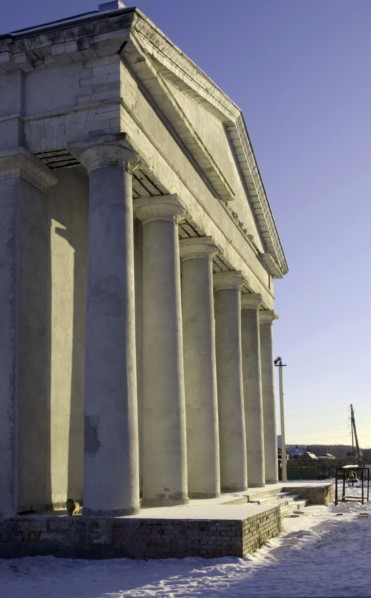 Архитектурный облик храма сочетает в себе монументальность и изящество. Чёткие пропорции, арочные оконные проёмы и лаконичный декор фасадов свидетельствуют о глубоком понимании строителями канонов православной архитектуры. В зимнее время, когда был сделан снимок, храм, окружённый искристым снегом, приобретает особую, возвышенную красоту, напоминая о вечных ценностях и божественной благодати.