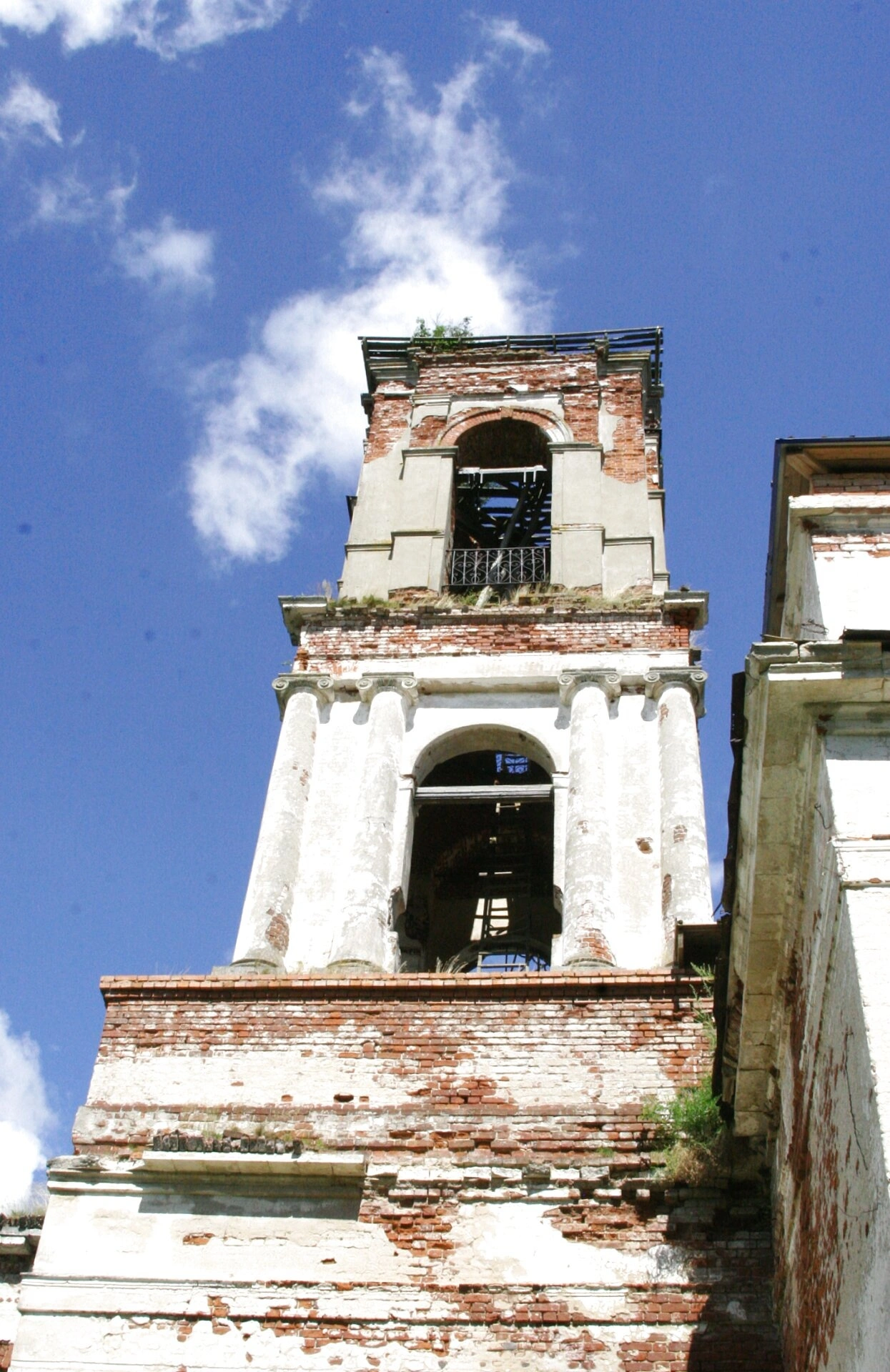 К великому сожалению, в годы гонений на Церковь храм постигла участь многих святынь России. Он был закрыт, разорён и постепенно пришёл в запустение. На фотографии явственно видны следы разрушения: обвалившаяся кирпичная кладка стен, полностью утраченная кровля и пустые глазницы оконных проёмов. От внутреннего убранства не осталось и следа.