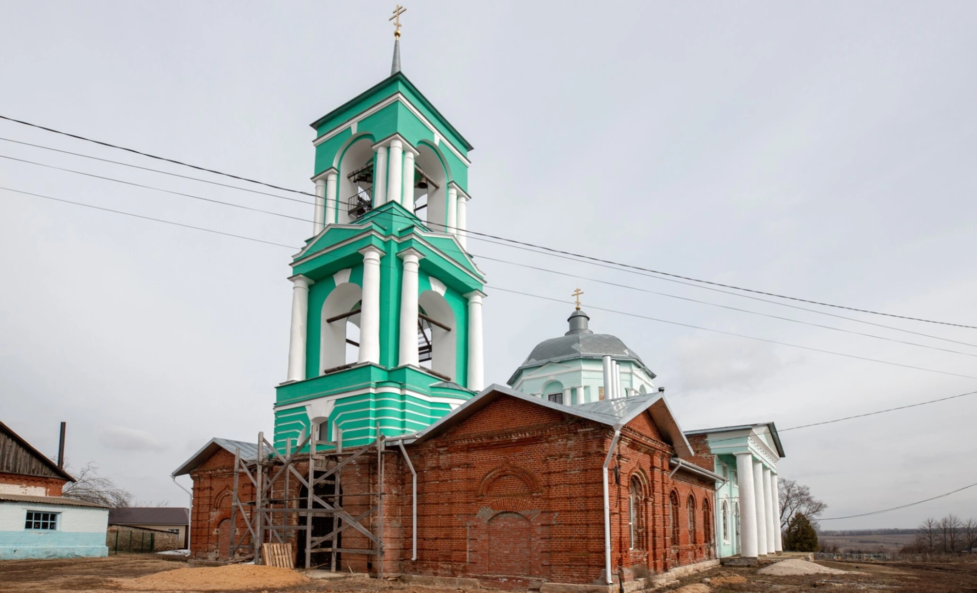 В момент съёмки храм находится в благодатном процессе возрождения, о чём свидетельствуют установленные строительные леса на одном из пристроев. Это говорит о непрестанных трудах по восстановлению и сохранению древней святыни для будущих поколений. Окружает дом Божий типичный для среднерусской полосы пейзаж: просторы полей и редкие строения в отдалении, что подчёркивает уединённый и молитвенный характер этого места.