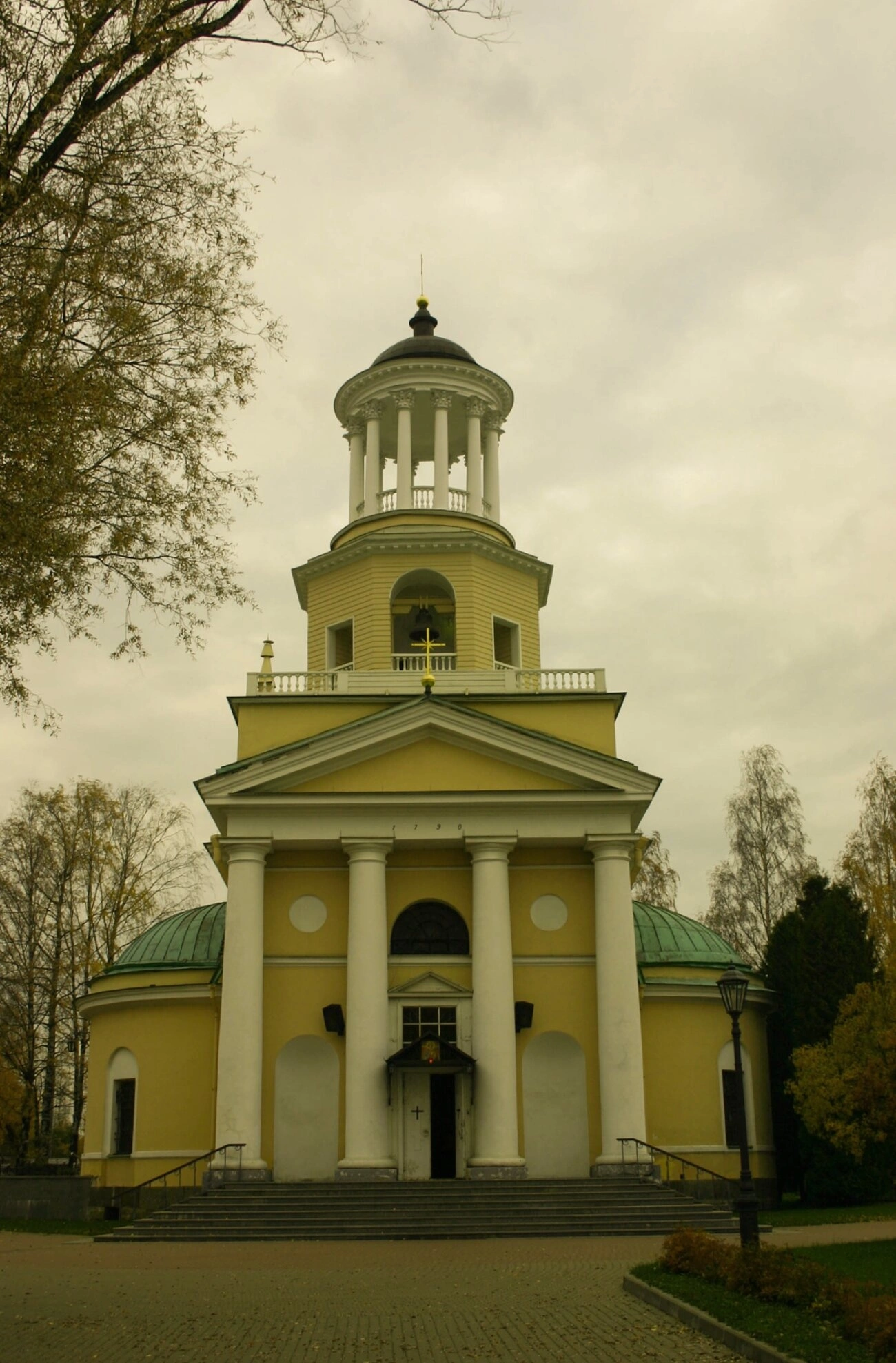 Архитектурный облик церкви строг и благороден. Основной объём выполнен в форме ротонды, увенчанной массивным куполом и главкой с крестом. С запада к нему примыкает трапезная и трёхъярусная колокольня со шпилем, которая была достроена в середине XIX века. Фасад украшает монументальный портик с шестью колоннами коринфского ордера, что придаёт зданию особую торжественность и величие.