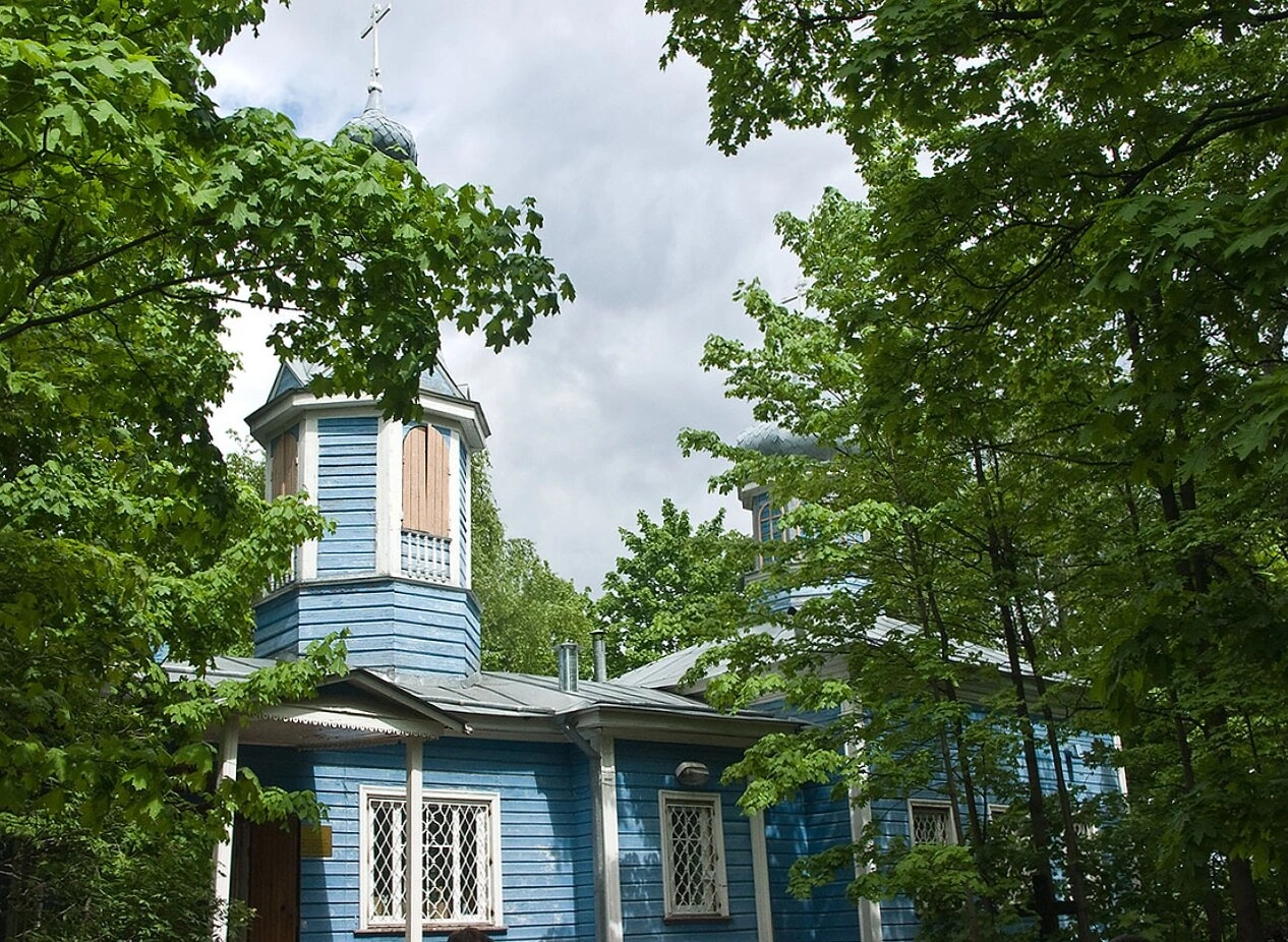 Храм, освящённый в 1878 году, был возведён на средства горожан и купечества для отпевания усопших. Архитектура церкви выдержана в традиционном русском стиле. Здание срублено из дерева и окрашено в небесно-голубой цвет, что символизирует чистоту и небесную благодать, а наличники и элементы декора выделены белым, создавая торжественное и строгое звучание. Над основным объёмом возвышается восьмерик, увенчанный луковичной главкой, покрытой лемехом и водружённым на неё золочёным крестом.