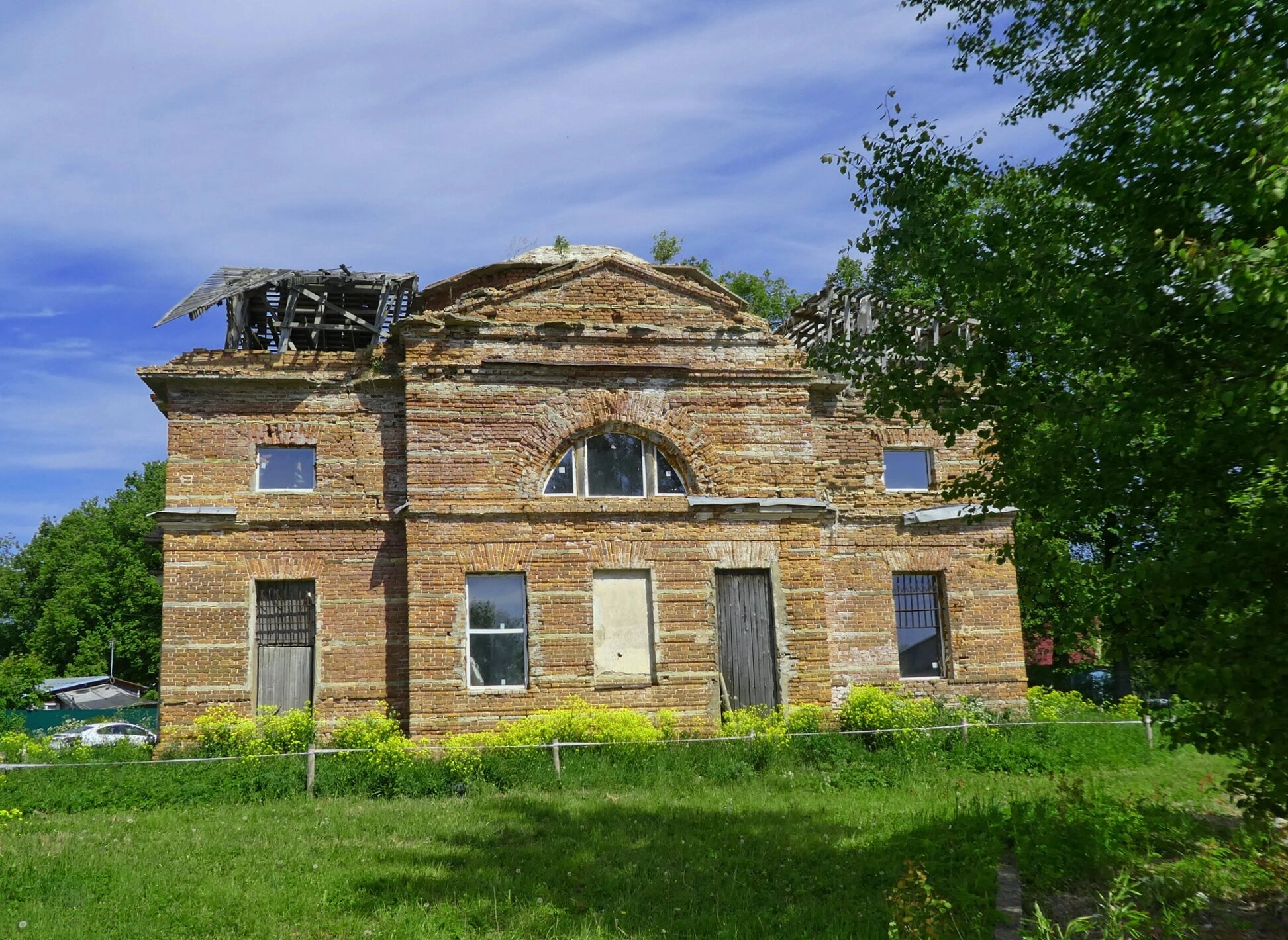 Здание храма, возведённое из красного кирпича, представляет собой двухэтажную постройку, выполненную в эклектичном стиле, характерном для церковного зодчества того периода. Фасад украшают оконные проёмы арочной формы, часть из которых ныне заколочена, а иные утратили остекление. Святыня серьёзно пострадала от времени и запустения: частично обрушилась кровля, обнажив деревянные конструкции перекрытий.