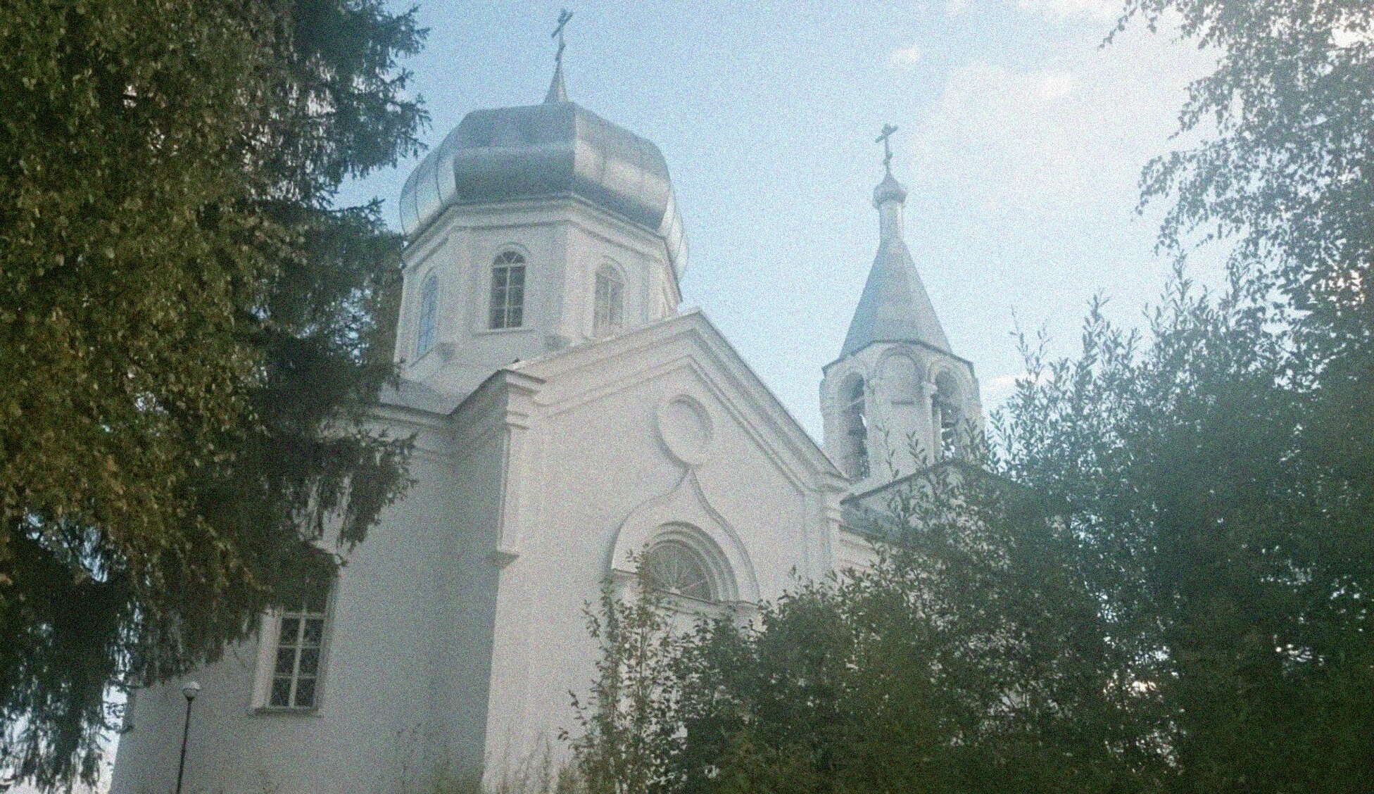 На фотографии запечатлена прекрасная православная церковь, освящённая во имя святой великомученицы Параскевы Пятницы. Храм располагается в живописной деревне Мшенцы Бологовского района Тверской области, посреди русского поля, утопающего в зелени деревьев, под светлым голубом небом с благодатными облаками.