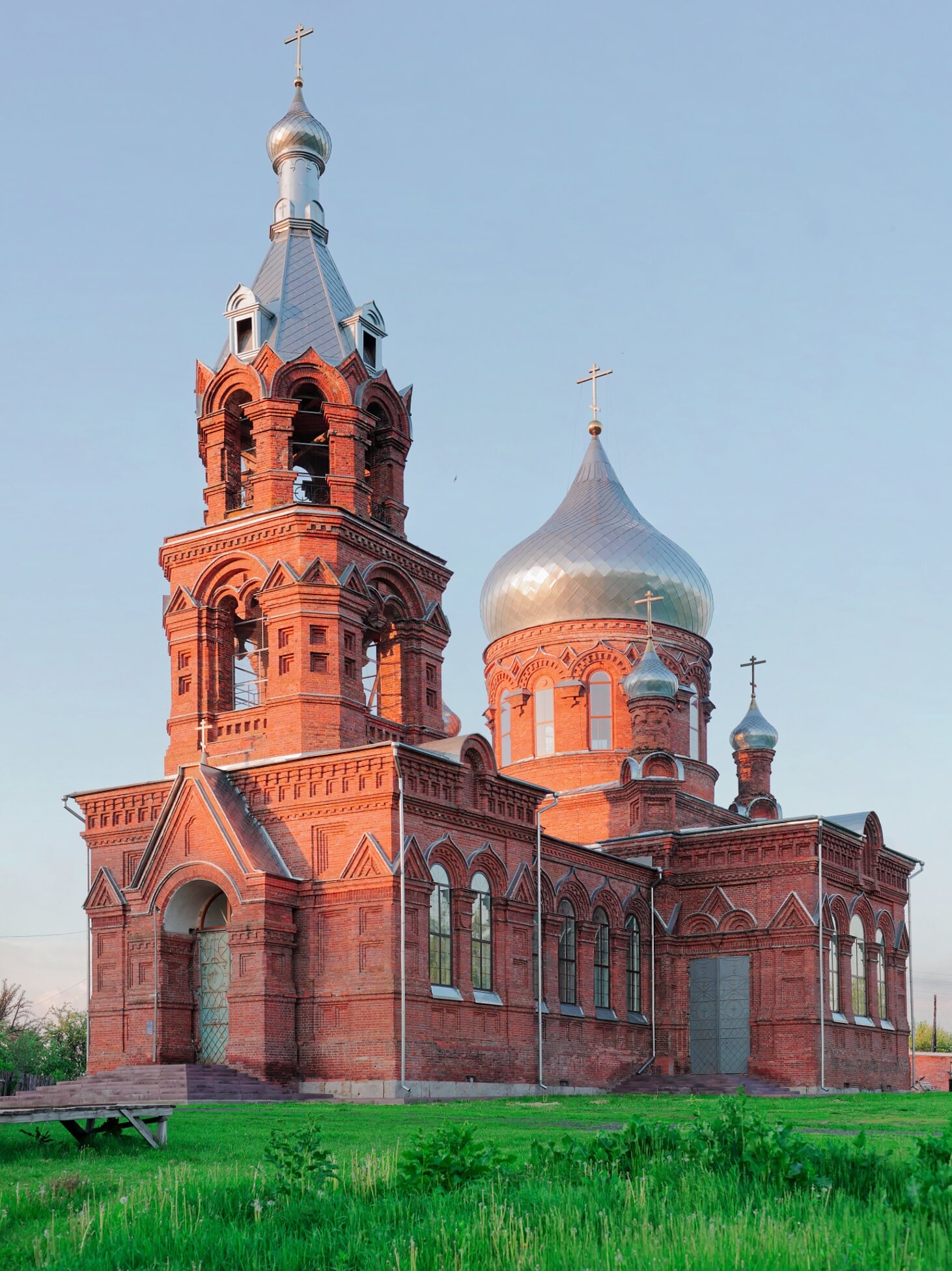 Каменный храм был возведён в 1914 году на средства прихожан и благотворителей и считался одним из крупнейших приходских храмов в округе. Здание сооружено из красного кирпича с выразительной кладкой и богатым декоративным убранством, характерным для эклектики с преобладанием элементов русского стиля. Архитектурный ансамбль отличается гармоничными пропорциями и устремлённостью ввысь.