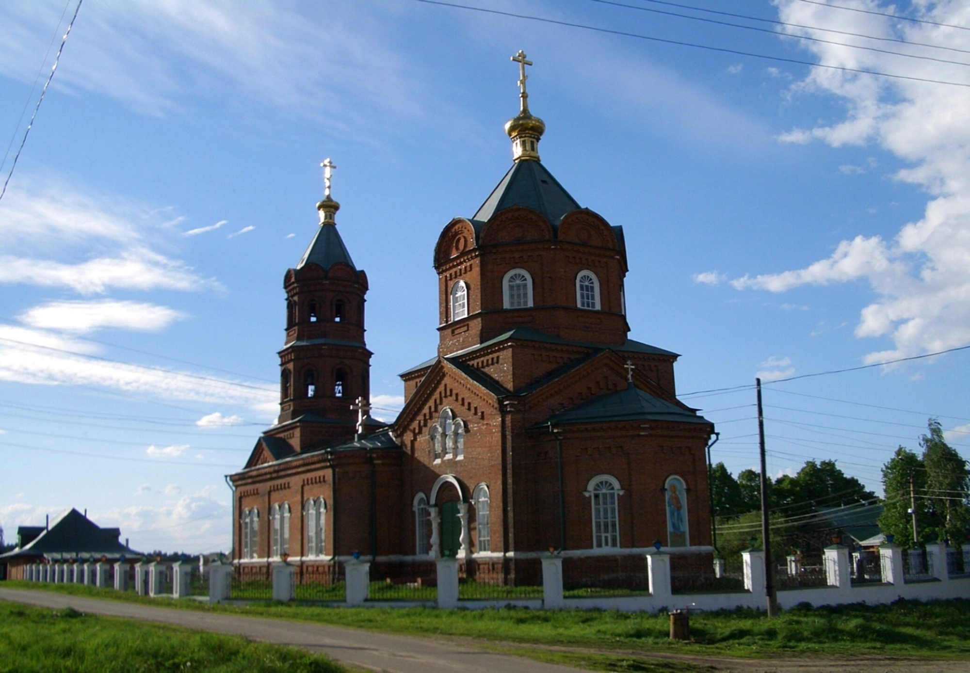 На представленной фотографии запечатлён величественный каменный храм во имя Святой Живоначальной Троицы, расположенный в селе Безводное Кстовского района Нижегородской области. Действующая православная церковь, являющаяся архитектурной доминантой и духовным центром села, была возведена в 1894 году на средства благотворителей и освящена в честь одного из главных христианских праздников — Дня Святой Троицы.