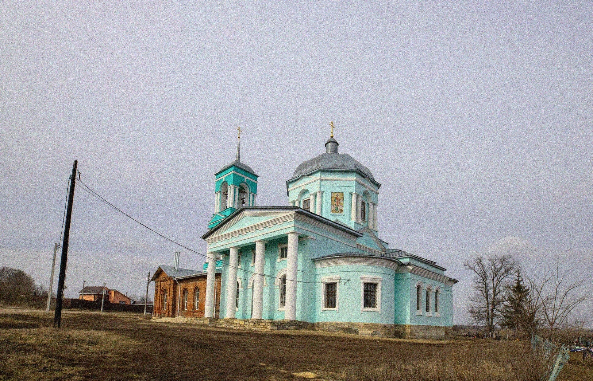 На территории вокруг храма расположено кладбище, где погребены усопшие прихожане, а также установлен памятник с надписью «Усопшим в XIX веке», который недавно был отреставрирован. Храм содержится в excellentном состоянии, что свидетельствует о заботе и внимании со стороны прихожан и духовенства. В холодное время года, когда сделана фотография, окружающий пейзаж подчёркивает величие и духовную силу этого святого места.