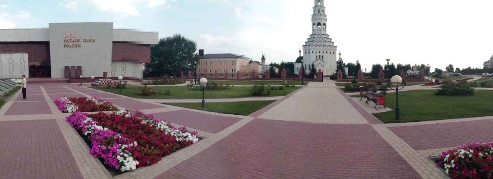 На представленной фотографии запечатлён величественный храм во имя святых первоверховных апостолов Петра и Павла, возведённый на легендарном Прохоровском поле. Этот святой храм-памятник был создан по благословению Святейшего Патриарха Алексия II и освящён в 1995 году, в год пятидесятилетия победы в Великой Отечественной войне. Он стоит на месте самого крупного в истории встречного танкового сражения, произошедшего в июле 1943 года в ходе Курской битвы, и является духовным символом героизма и жертвенности русского воинства.