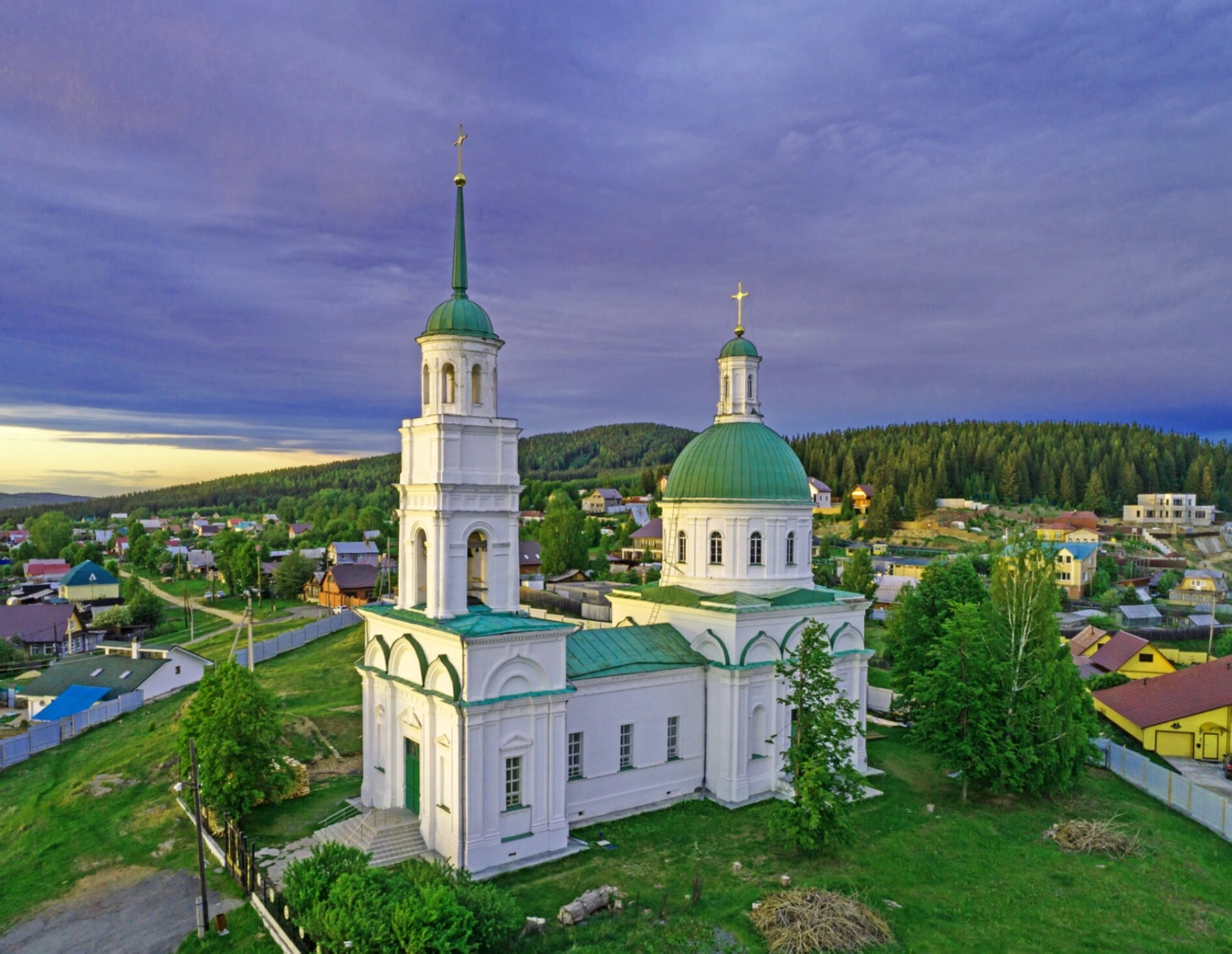 Данная святыня является не только духовным центром для православных жителей поселка, но и объектом культурного наследия, охраняемым государством. Она свидетельствует о глубоких исторических корнях православия на уральской земле и традициях каменного церковного строительства, сохранявшихся даже в отдаленных заводских поселках. Вид с высоты подчеркивает гармоничное единение творения рук человеческих, возведенного во славу Божию, и нетронутой красоты божественной природы.