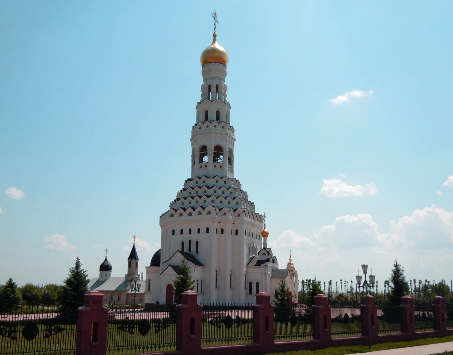 На фотографии запечатлён храм во имя святых первоверховных апостолов Петра и Павла, расположенный в посёлке Прохоровка Белгородской области. Этот величественный православный храм был возведён как мемориал в честь воинов, павших в легендарном Прохоровском танковом сражении, состоявшемся 12 июля 1943 года в ходе Курской битвы. Закладка первого камня святыни состоялась в 1992 году, в канун празднования 50-летия Великой Победы.