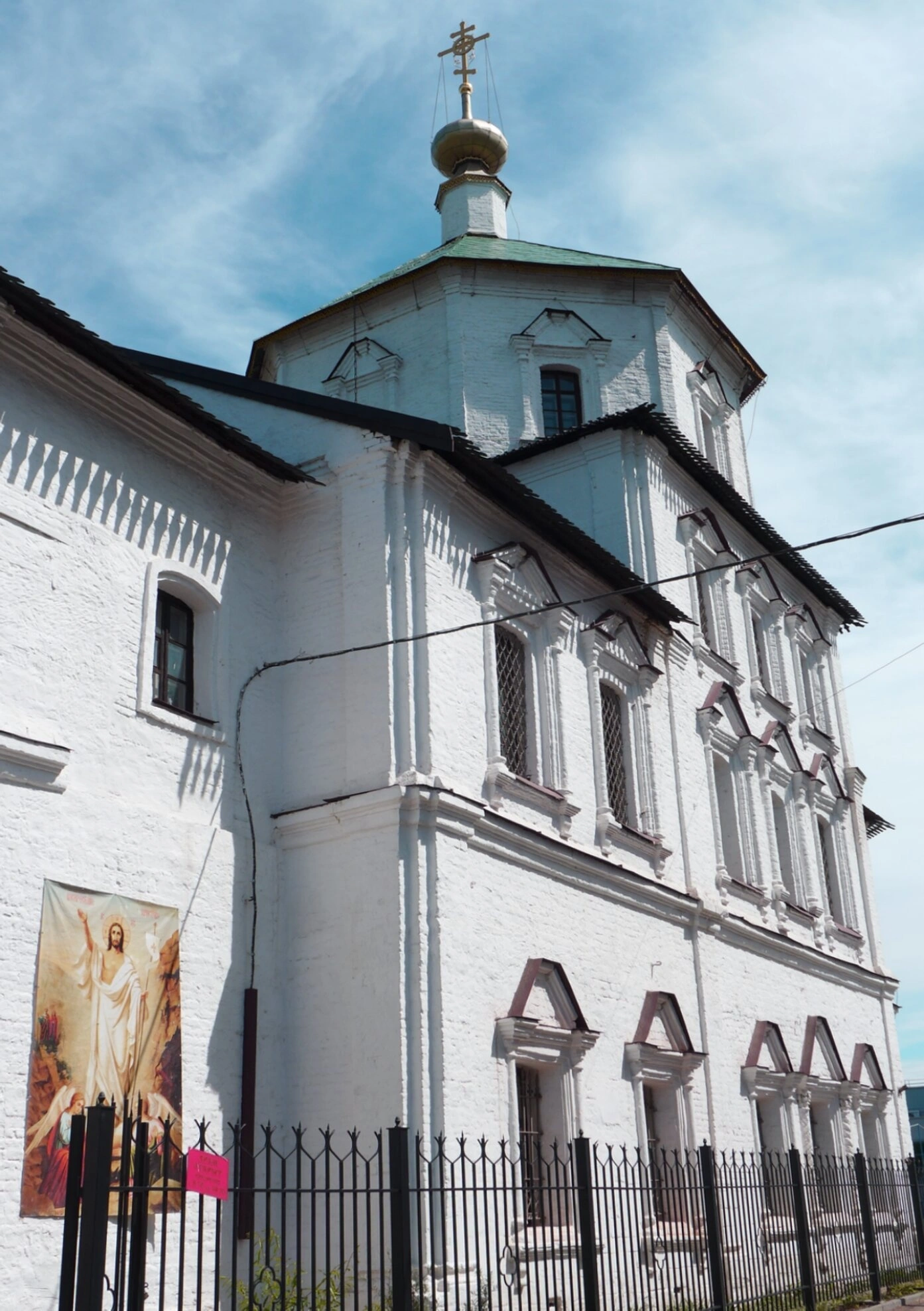 На представленной фотографии запечатлён старинный православный храм во имя святых благоверных князей-страстотерпцев Бориса и Глеба, что расположен в историческом районе Затьмачье города Твери. Это один из немногих уцелевших храмов города, являющийся памятником архитектуры и духовным центром.