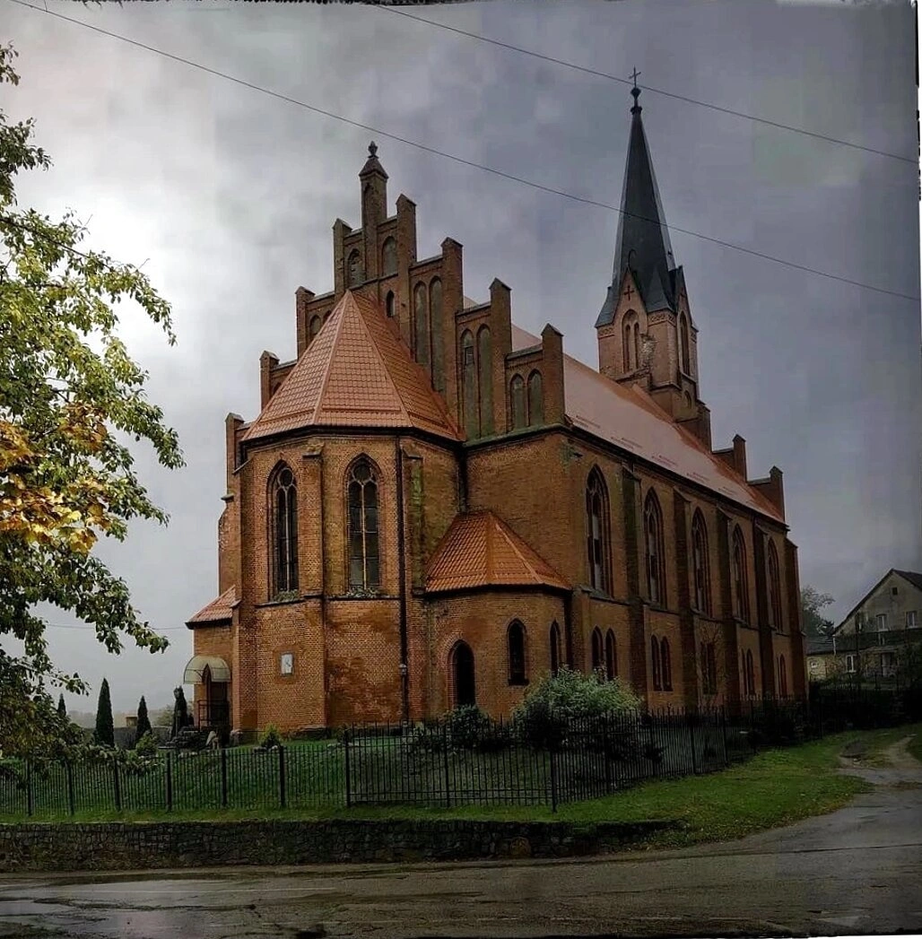 На представленной фотографии запечатлён православный храм в честь Святых первоверховных апостолов Петра и Павла, расположенный в городе Краснознаменске Калининградской области. Это величественное здание имеет глубокую историю, уходящую корнями в немецкое прошлое этих земель. Первоначально оно было возведено как лютеранская кирха для общины города Лазденен, каковым являлся Краснознаменск до 1946 года.