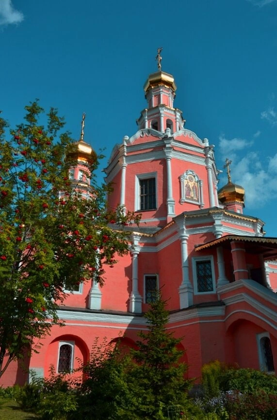 На представленной фотографии запечатлен храм в честь святых благоверных князей-страстотерпцев Бориса и Глеба, расположенный в районе Зюзино города Москвы. Святыня представляет собой выдающийся образец храмовой архитектуры конца XVII века, выполненный в стиле нарышкинского барокко.