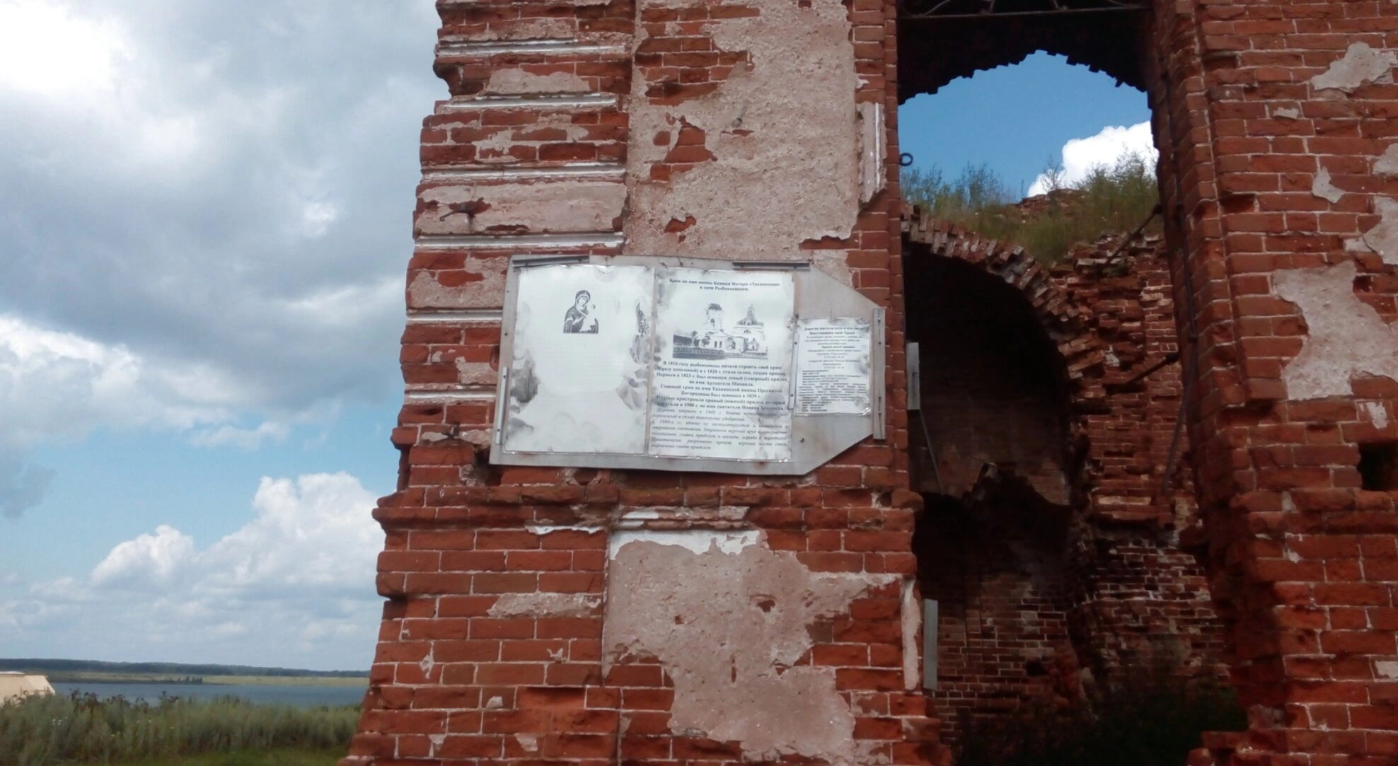 На фотографии запечатлен храм в честь Тихвинской иконы Божией Матери, расположенный в селе Рыбниковское Каменского городского округа Свердловской области. Этот каменный трехпрестольный храм был возведен в период с 1816 по 1839 год на берегу живописного озера Большой Сунгуль . Освящение его северного придела во имя святого Архистратига Михаила состоялось в 1823 году, главного храма в честь чудотворного Тихвинского образа Пресвятой Богородицы — в 1839 году, а южного придела во имя святителя Иоанна Златоуста — в 1900 году .