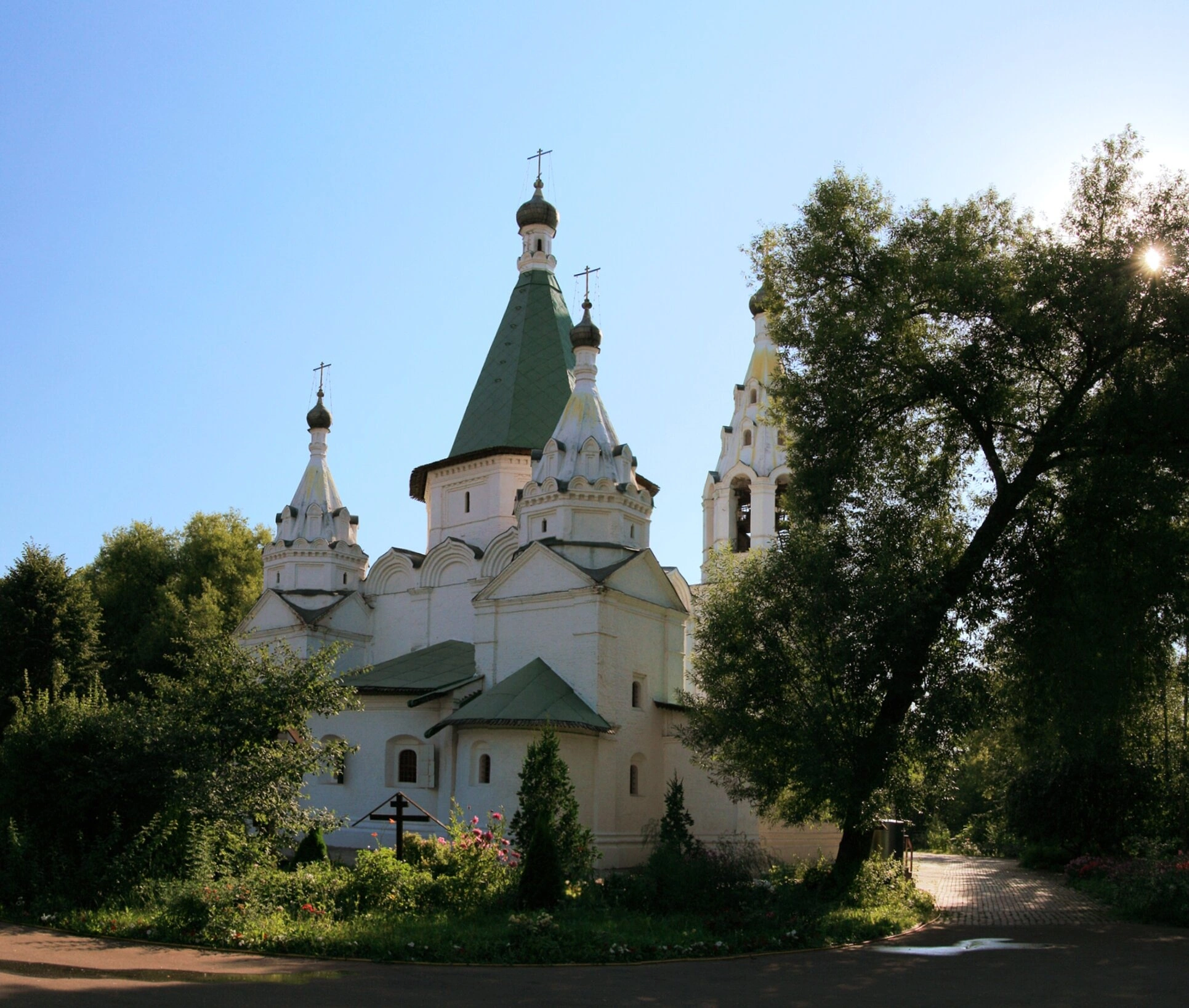 Исторически эта местность с XIV века принадлежала русским митрополитам и патриархам. При святителе Алексии, митрополите Московском, здесь были разбиты митрополичьи сады, что подчеркивает особое духовное значение этого места. Храм окружают вековые деревья и кустарники, которые частично скрывают его основание, создавая ощущение уединенности и покоя. Справа от церкви видна дорожка, ведущая вглубь храмовой территории.