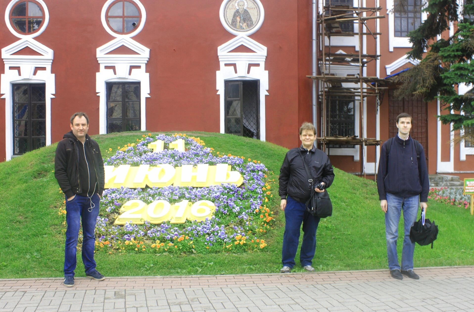 На фотографии запечатлён вид на один из старейших православных храмов Калуги — церковь в честь Усекновения Главы Святого Иоанна Предтечи. На переднем плане изображена благоустроенная мощёная дорожка, ведущая к святыне, и ухоженный травяной холм, на котором в июне 2016 года была выложена яркая цветочная композиция, изображающая название месяца и год.