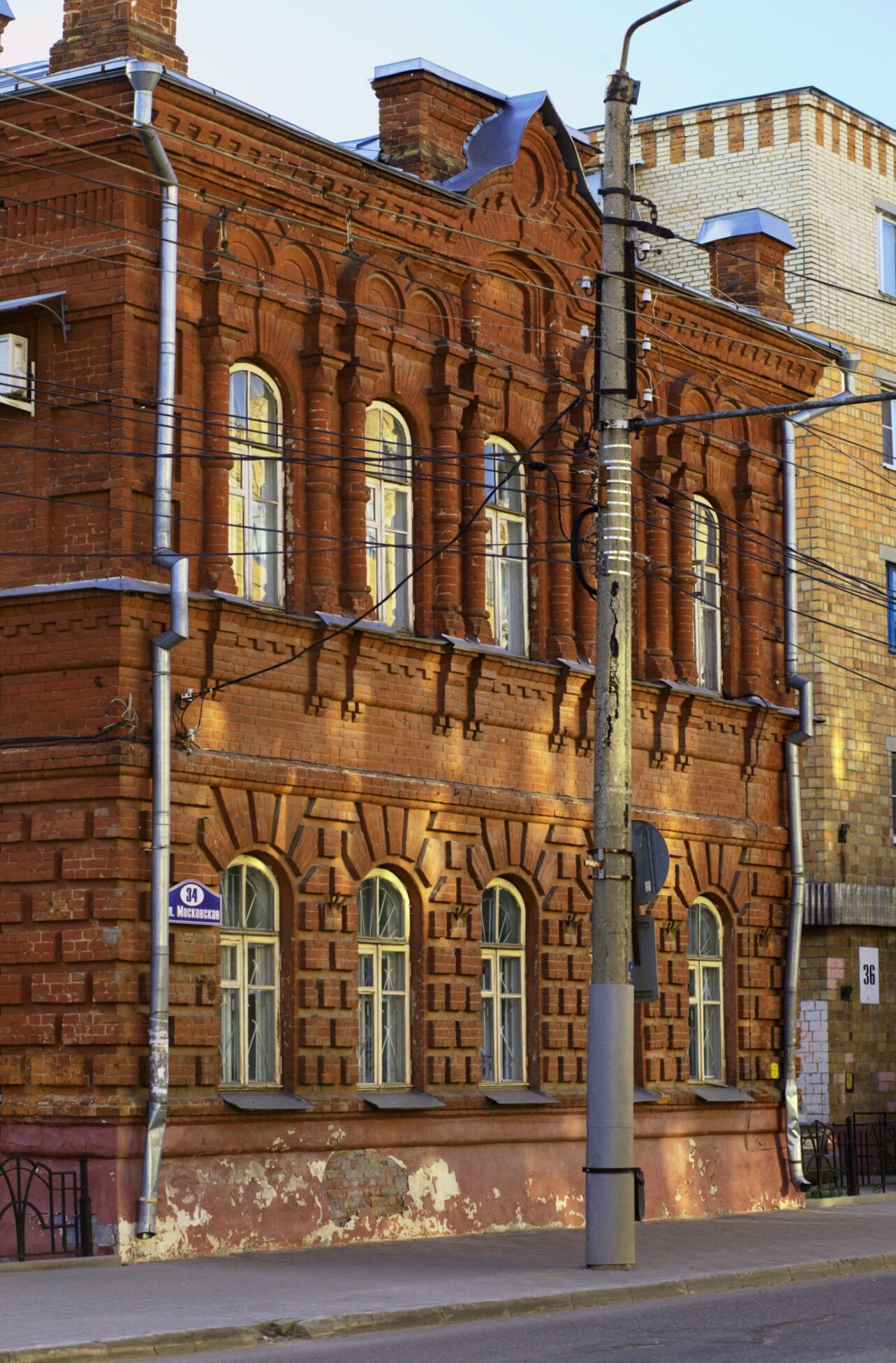 На представленной фотографии запечатлён величественный православный храм в честь Усекновения Честной Главы Святого Пророка, Предтечи и Крестителя Господня Иоанна, расположенный в исторической части города Калуги на улице Московской. Это выдающийся памятник церковной архитектуры конца XIX века, выполненный в русском стиле с использованием красного кирпича и богатого декоративного убранства.
