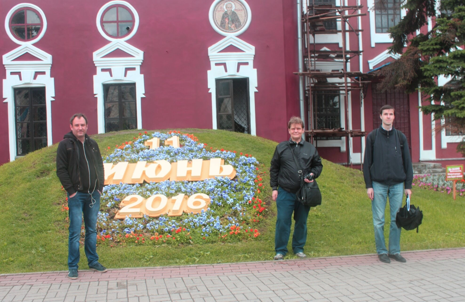На переднем плане фотографии обращает на себя внимание благоустроенная клумба с цветами небесно-голубого оттенка, образующими чёткую надпись «ИЮНЬ 2016», что свидетельствует о времени создания снимка. Трое прихожан, стоящих перед храмом, придают фотографии особую жизненную атмосферу и передают масштаб архитектурного сооружения.