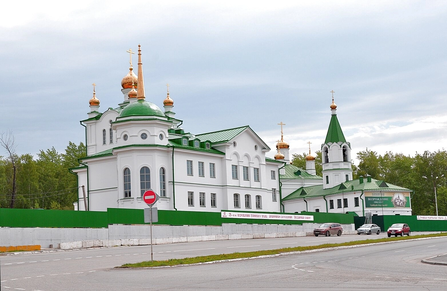 На представленной фотографии запечатлён величественный православный храм в честь Успения Пресвятой Богородицы, расположенный в историческом городе Берёзовском Свердловской области. Этот духовный центр является одной из ключевых святынь не только города, но и всего Уральского региона.