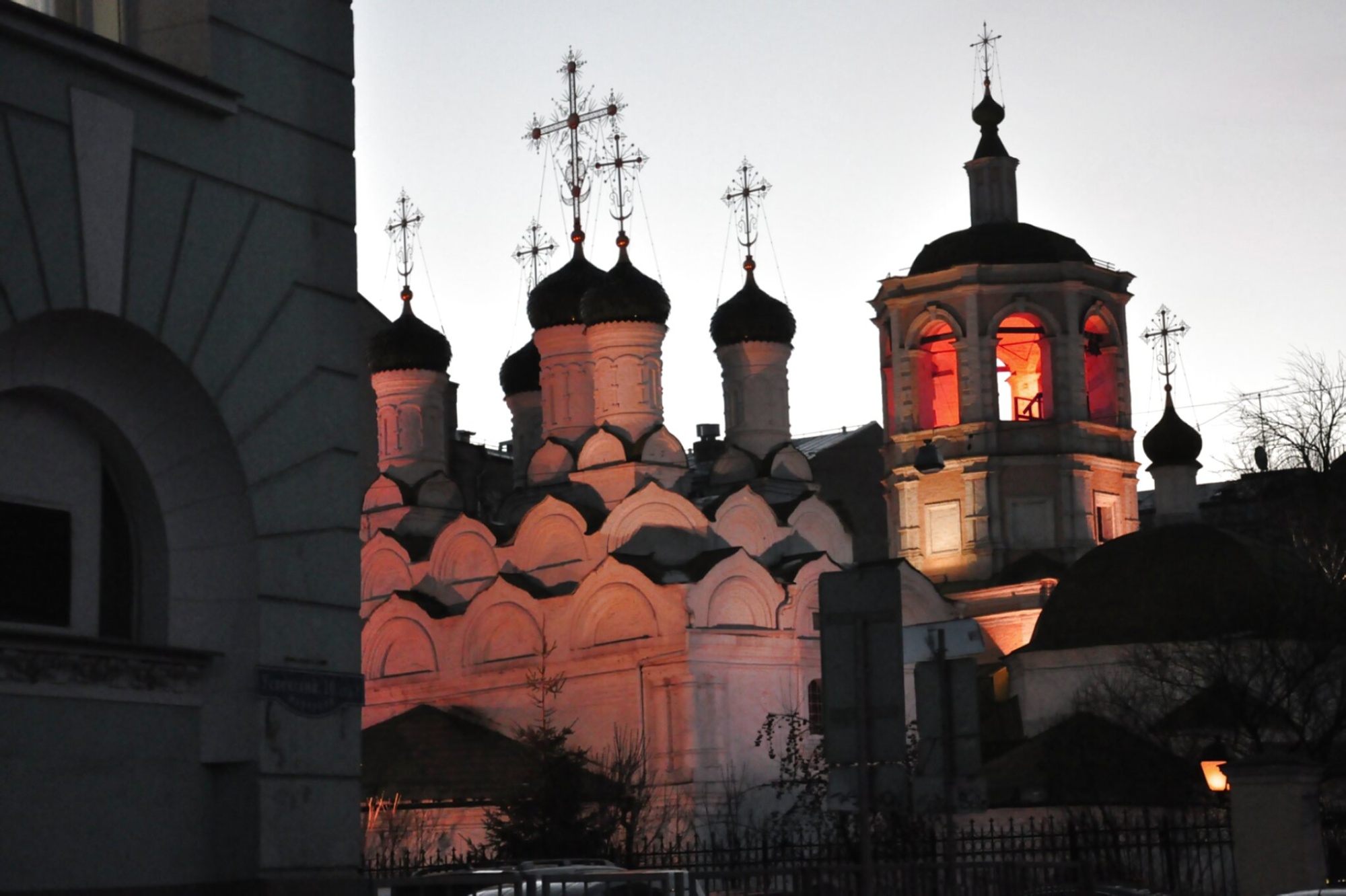 - Храм Успения Пресвятой Богородицы в Путинках в вечернем освещении