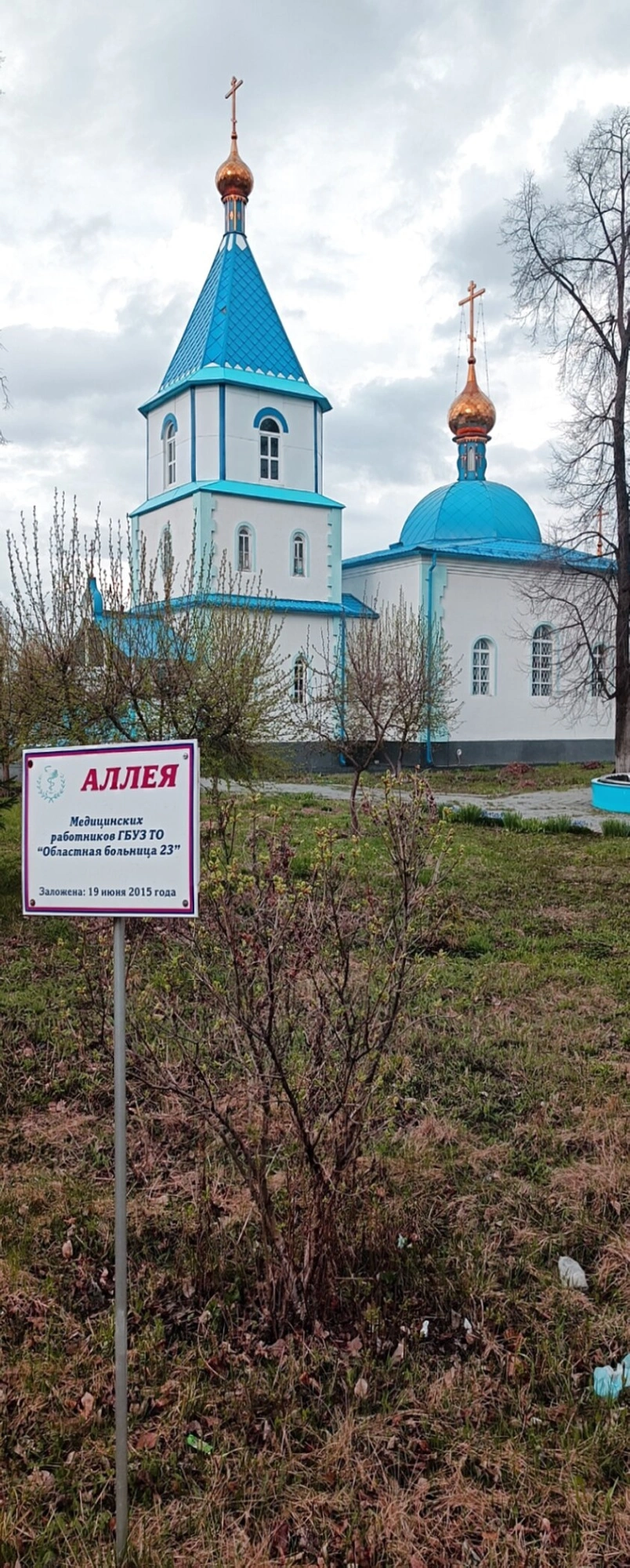 На фотографии запечатлён храм в честь иконы Божией Матери «Целительница», расположенный на территории Государственного бюджетного учреждения здравоохранения Тюменской области «Областная больница № 23» в городе Ялуторовске. Святыня возведена для духовного окормления пациентов и медицинского персонала, напоминая о неразрывной связи телесного и духовного исцеления.