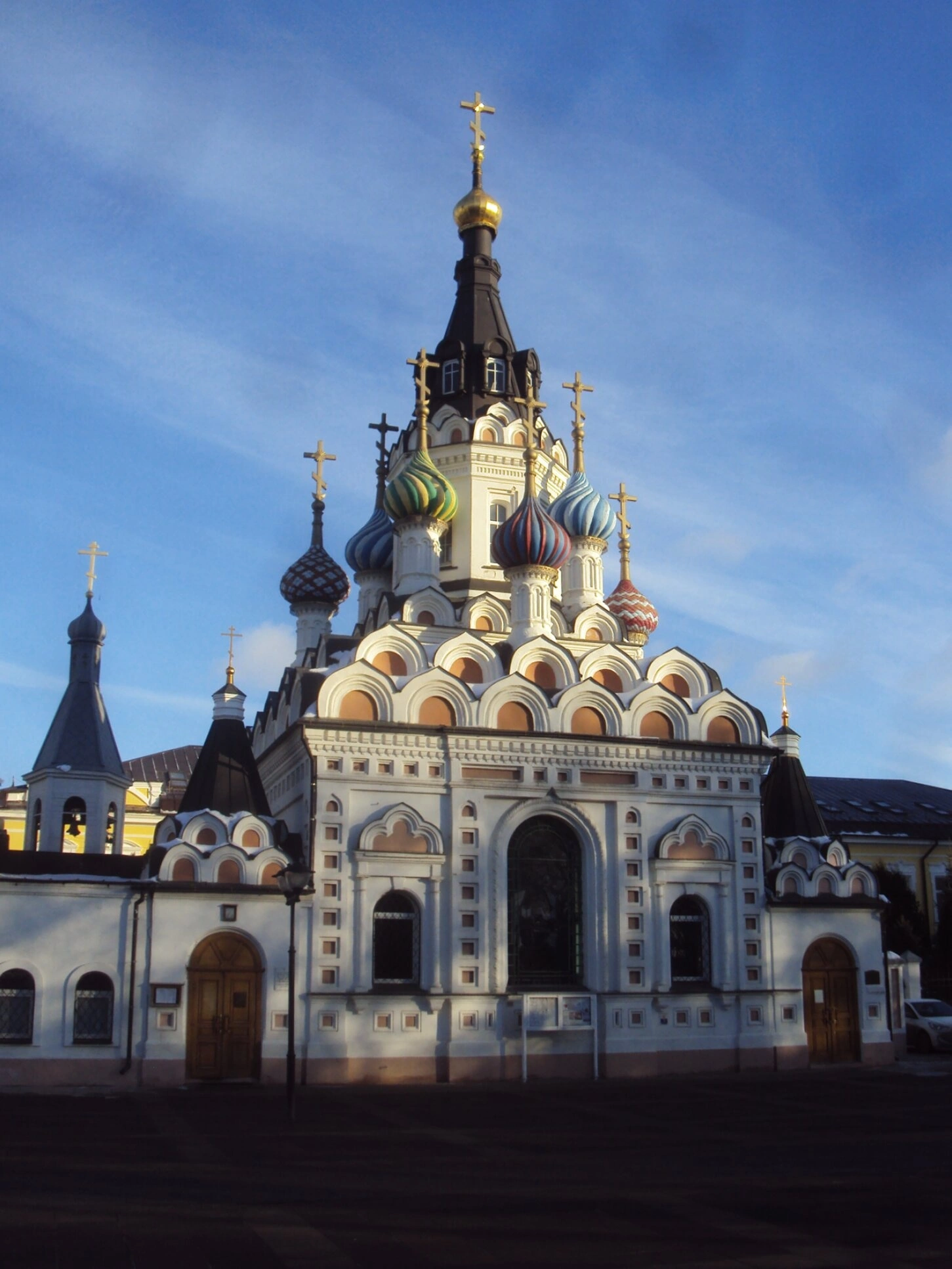 На представленной фотографии запечатлён храм в честь чудотворной иконы Божией Матери «Утоли моя печали», расположенный в городе Саратове. Это уникальное церковное здание, являющееся одной из ярких духовных и архитектурных достопримечательностей православного Поволжья.