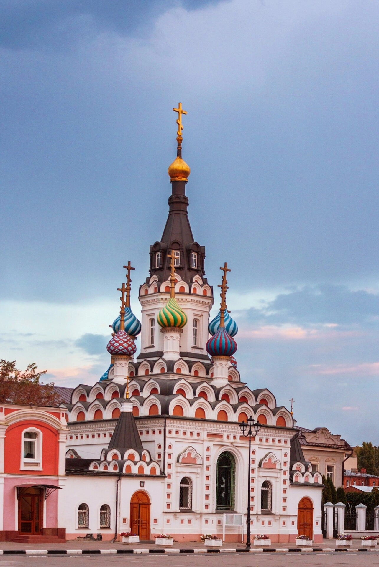 На представленной фотографии запечатлён храм в честь иконы Божией Матери «Утоли Моя Печали», расположенный в городе Саратове. Эта церковь-часовня, исторически находившаяся при Архиерейском доме, была возведена в 1906 году по благословению и попечению святого священномученика Гермогена, бывшего в то время епископом Саратовским и Царицынским. Храм был освящён в честь чудотворного образа Пресвятой Богородицы, известного своим утешительным названием «Утоли Моя Печали», что отражало глубокое молитвенное предназначение этого святого места.