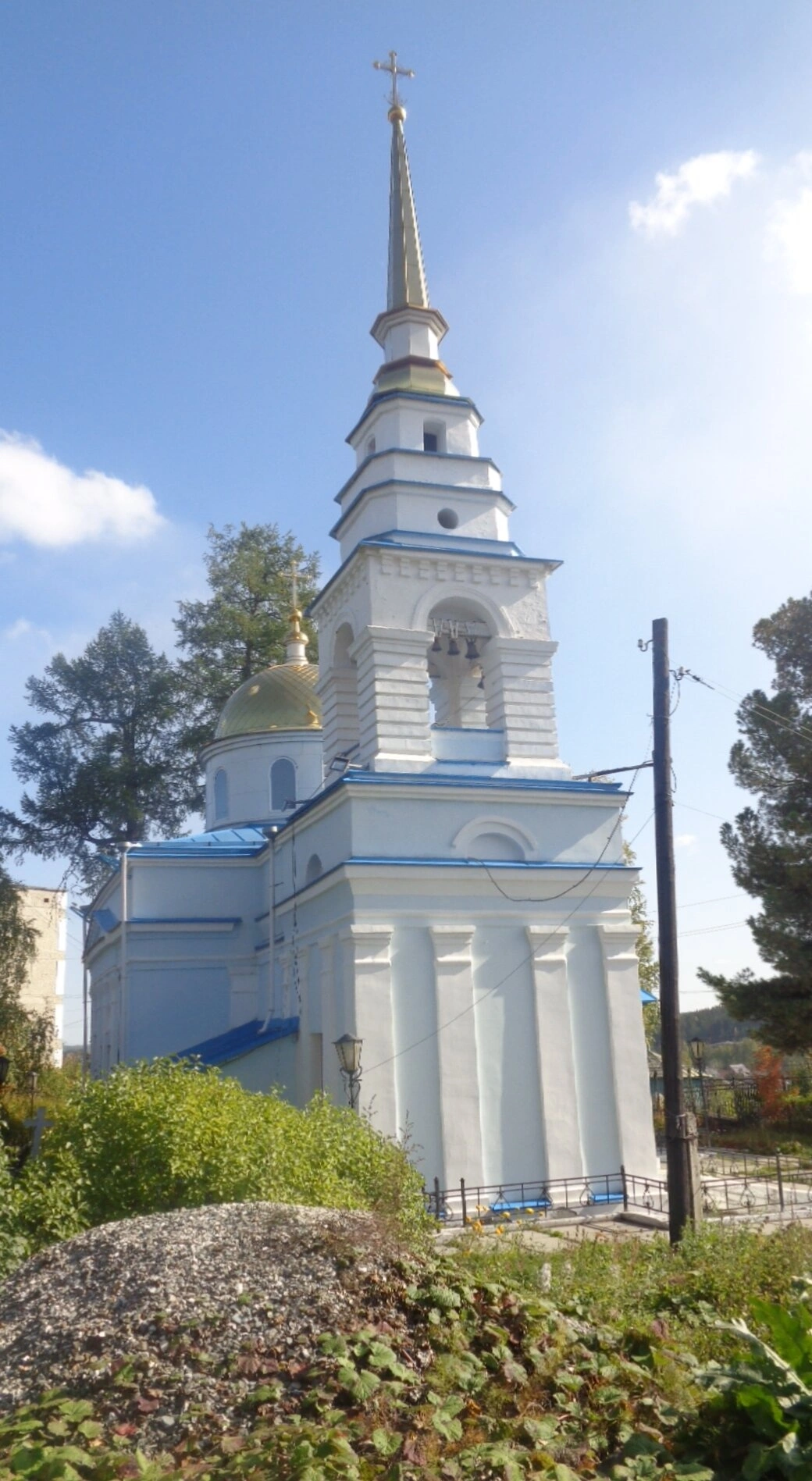 Храм окружают тенистые деревья и ухоженная зелень, что создаёт ощущение умиротворения и покоя. Ясное небо с легкими облаками подчёркивает величие этого святого места, освящающего благодатью всю округу. Данная фотография не только передаёт архитектурную красоту храма, но и позволяет ощутить дух православной веры, незыблемо пребывающей на земле Урала.