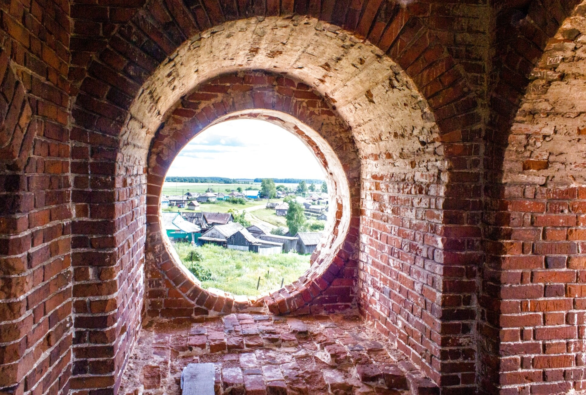 На фотографии запечатлён вид изнутри старинного кирпичного здания Церкви Троицы Живоначальной в селе Байково Нижегородской области. Святыня была возведена в 1890 году по инициативе местных прихожан и освящена в честь Пресвятой Живоначальной Троицы. Храм имеет три престола: главный — в честь Живоначальной Троицы, правый придел — во имя святителя Николая Чудотворца и благоверного князя Александра Невского, а левый — во имя преподобных Сергия и Никона Радонежских.
