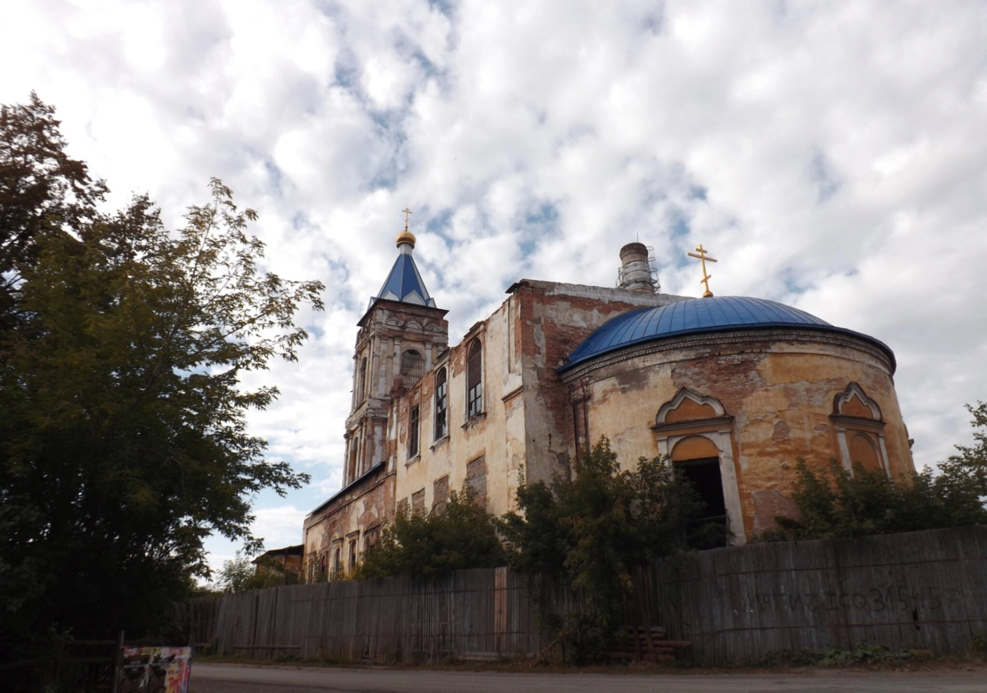 На фотографии запечатлён храм в честь Сретения Господня, расположенный в исторической части города Ирбита Свердловской области. Данный православный храм является значимым памятником церковной архитектуры второй половины XIX века, воплощая в себе традиции русского храмового зодчества.