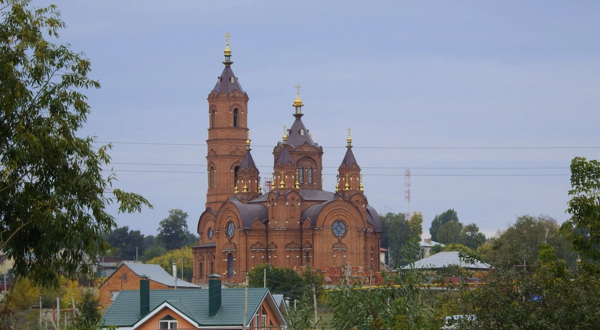 Церковь была построена в 1905 году исключительно на пожертвования местных жителей, что свидетельствует о глубокой вере и благочестии православной общины того времени. Архитектурное решение храма представляет собой гармоничный сплав элементов эклектики и русско-византийского стиля, что было характерно для церковного зодчества рубежа XIX–XX веков. Кирпичное здание отличается монументальностью форм, традиционным для русских храмов пятиглавием и изящными декоративными деталями, подчёркивающими его культовое назначение.