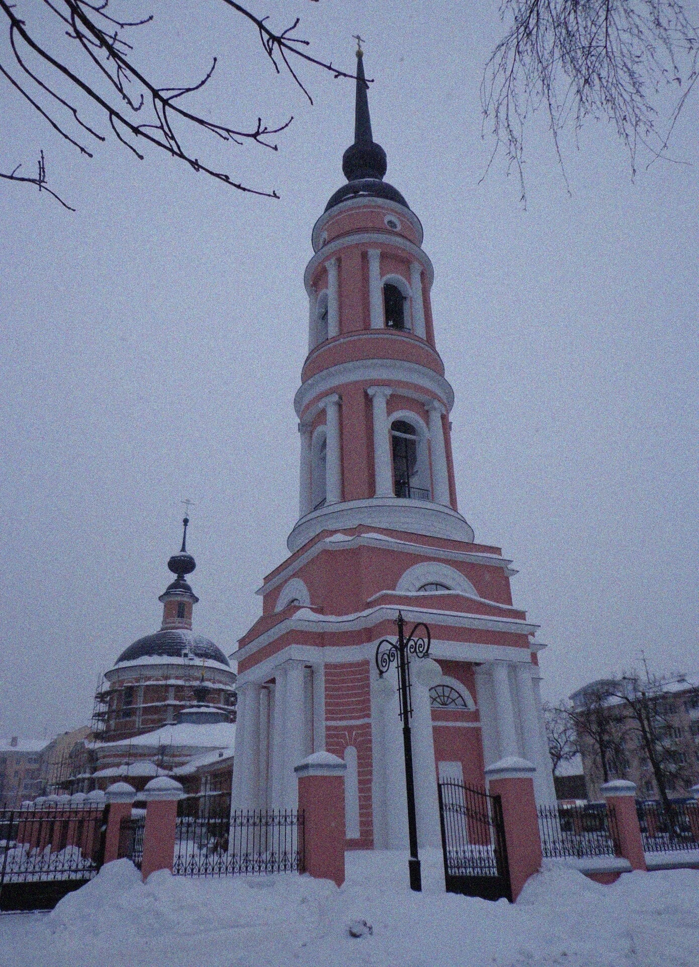 На представленной фотографии запечатлён храм в честь святых Жён-Мироносиц, что располагается в исторической части города Калуги. Зимний пейзаж придаёт святому месту особую, возвышенную красоту и благолепие. Архитектурный облик церкви, выдержанный в розово-белых тонах, характерен для русского церковного зодчества конца XIX века.