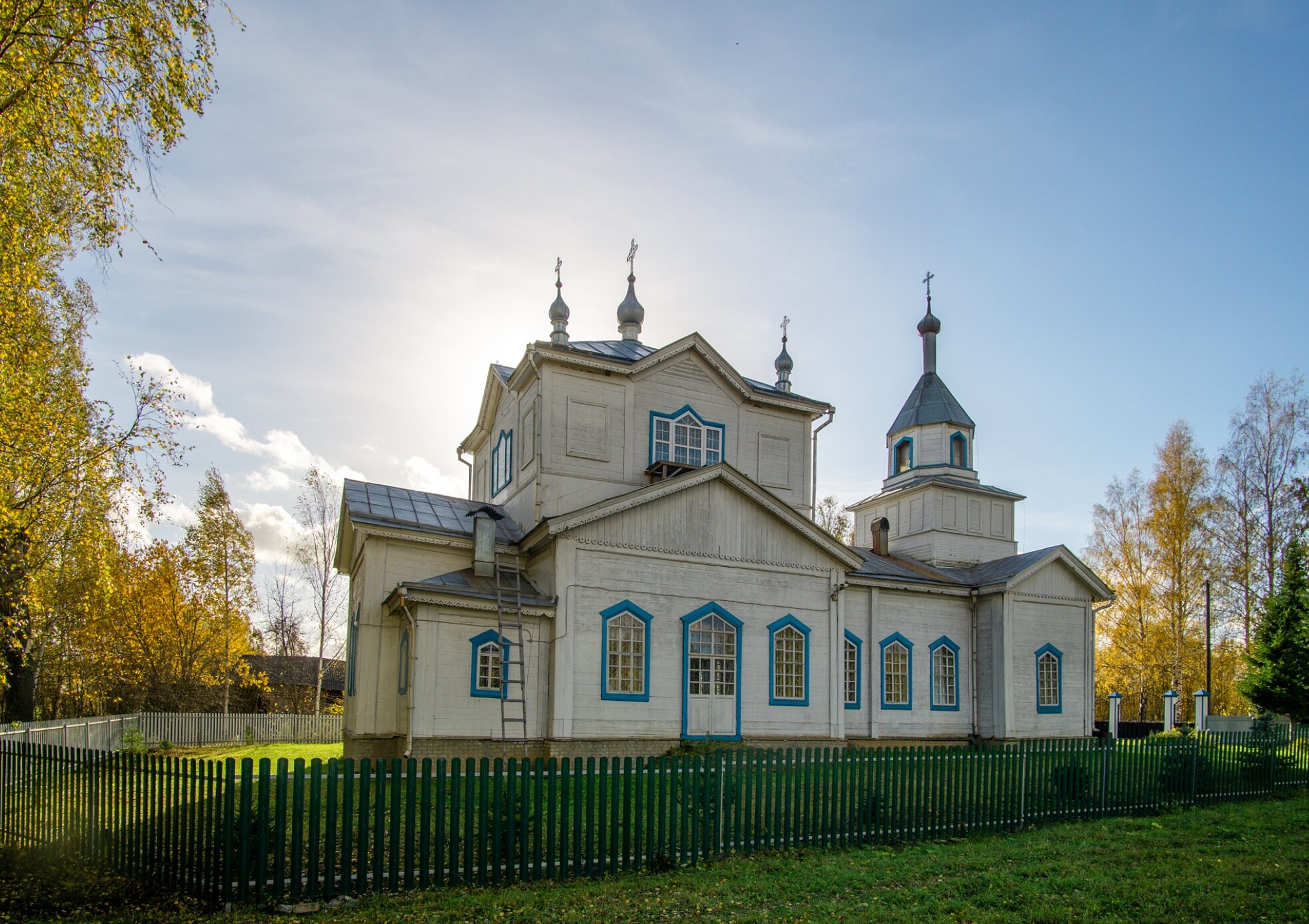 Храм окружает аккуратный деревянный забор, отделяющий священное пространство от мирской суеты. Осенняя растительность, запечатлённая на снимке, подчёркивает умиротворённость и особую духовную атмосферу этого места. Несмотря на скромные размеры, церковь в Потняке является важным духовным центром для местных жителей и памятником культурного наследия Кировской области, демонстрирующим мастерство вятских плотников и глубокую веру православных христиан.