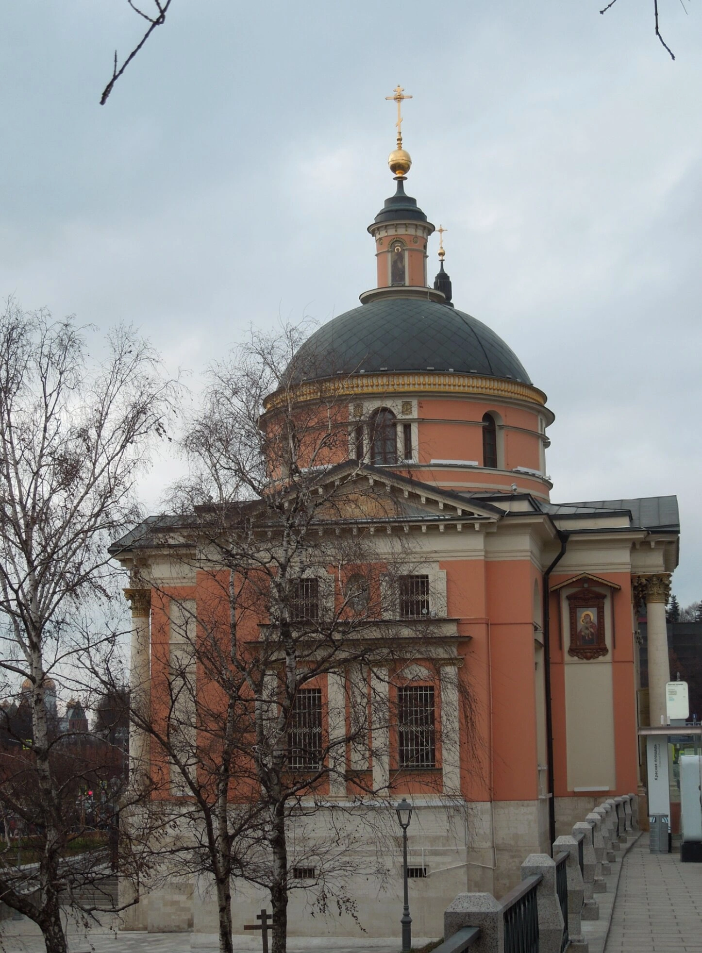 На представленной фотографии запечатлен храм великомученицы Варвары, расположенный в историческом центре Москвы на улице Варварке. Святыня находится в непосредственной близости от станции метро «Китай-город» и является значимым памятником церковной архитектуры.