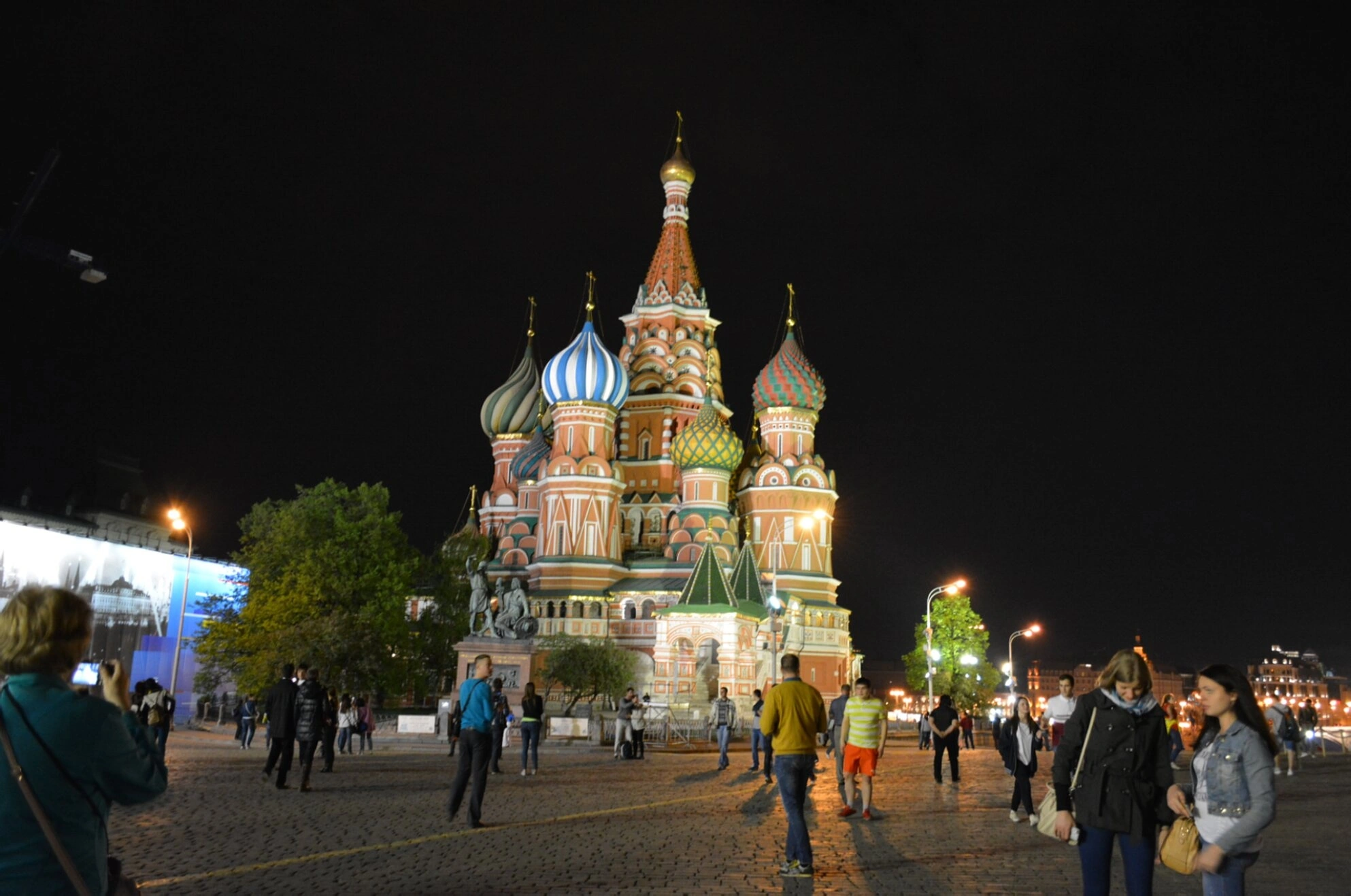 - Храм Василия Блаженного (Собор Покрова на Рву) в ночной подсветке