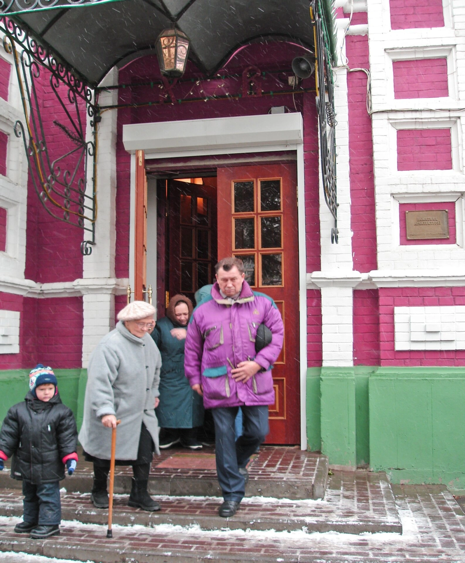 На представленной фотографии запечатлён храм в честь святой великомученицы Параскевы Пятницы, расположенный в исторической местности Качалово на юге Москвы. Снимок был сделан в ноябре 2005 года и передаёт атмосферу православной жизни этого святого места.